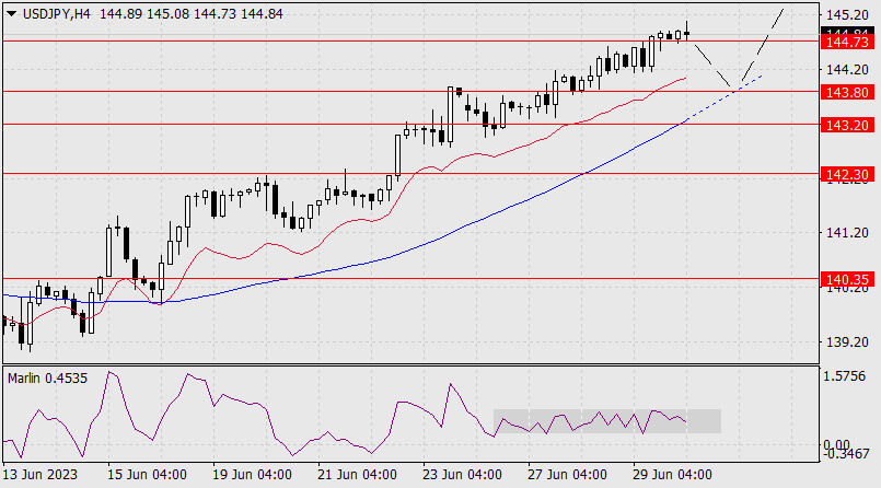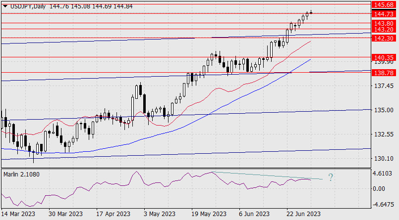 Прогноз по USD/JPY на 30 июня 2023 годаИнстаФорекс - Instaforex, 2 года назад USD/JPY Так как формирование дивергенции сильно затягивается, то её может и не быть. При таком сценарии цена может лишь немного откорректировать вниз и продолжить рост до намеченной цели 145.68 и выше (пока Банк Японии не проведёт интервенцию).