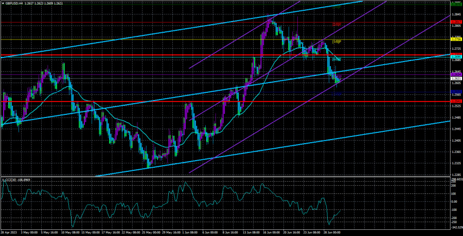Обзор пары GBP/USD. 30 июня. Американская экономика оказалась сильнее, чем ожидал рынокИнстаФорекс - Instaforex, 2 года назад Валютная пара GBP/USD в четверг также продолжала нисходящее движение, которое началось еще сутками ранее на выступлении Джерома Пауэлла, который чуть ли не пообещал повысить ставку еще два раза в 2023 году. Вчера же в Великобритании не было никаких важных событий, зато в США был опубликован отчет по ВВП за первый квартал в финальной оценке. Мы говорили уже ранее, что отчеты по ВВП редко провоцируют сильную реакцию рынка, так как их фактическое значение редко отклоняется от прогнозного. Однако в любом правиле есть исключения. Финальное значение показателя превысило прогноз на 0,6%, что является достаточно серьезным отклонением и означает, что экономика США находится в гораздо лучшем состоянии, чем ожидал рынок. Помимо этого, отчет по заявкам на пособия по безработице оказался значительно ниже прогнозов, что подтверждает весьма неплохое состояние рынка труда. На основании этих двух отчетов мы и увидели резкий рост доллара. Хорошо, вчера доллару оказал поддержку макроэкономический фон, но что же по его долгосрочным перспективам? Мы по-прежнему считаем, что пара должна показать сильное падение. Несмотря на повышение ставки Банком Англии на 0,5% на прошлом заседании, британский фунт уже вырос чрезмерно сильно. Как мы уже говорили, мы не выступаем против долгосрочного восходящего тренда, мы лишь считаем, что прежде, чем его продолжать, следует скорректироваться. И на 24-часовом ТФ отлично видно, что мы имеем ввиду. Факт повышения ставки БА до 5% и возможные еще два или три повышения могут еще некоторое время поддерживать фунт, но судя по графику 24-часового ТФ складывается ощущение, что американская экономика в рецессии, а ставку сильнее поднял именно Банк Англии, что не соответствует реальному положению вещей. Поэтому мы исходим из общей сильной перекупленности фунта и ждем его коррекции. Американская статистика радует чаще, чем британская.Сильное значение отчета по ВВП в США(хоть оно и слабее предыдущего квартала) означает, что экономика справляется с высокими ставками очень хорошо. Напомним, что безработица в Америке остается около своих минимальных значений за последние 50 лет, а рынок труда создает достаточно новых рабочих мест каждый месяц. На наш взгляд, эти три показателя являются сейчас ключевыми. Индексы деловой активности или промышленное производство тоже являются важными показателями, но какая разница, насколько они падают, если самые важные отчеты показывают положительные результаты? Эндрю Бейли, глава Банка Англии, буквально на этой неделе заявил, что британская экономика показывает хорошую устойчивость, учитывая сильное ужесточение монетарной политики. А в цифрах это выглядит так: 0,1%, -0,1%, 0,1%, 0,1%. Это значения ВВП за последний 4 квартала в Британии. Да, рецессии нет, но и экономического роста нет. А теперь сравните эти цифры с последними тремя кварталами ВВП в США, чей доллар валится вниз уже 10 месяцев, то есть как раз три квартала: 3,2%, 2,6%, 2%. Разница очевидна, и это еще один фактор в поддержку перепроданного доллара. По нашему скромному мнению, американская статистика гораздо сильнее британской. Ставка ФРС выше ставки БА. Инфляция в США гораздо ниже британской. Фунт перекуплен, доллар перепродан. Технические корр