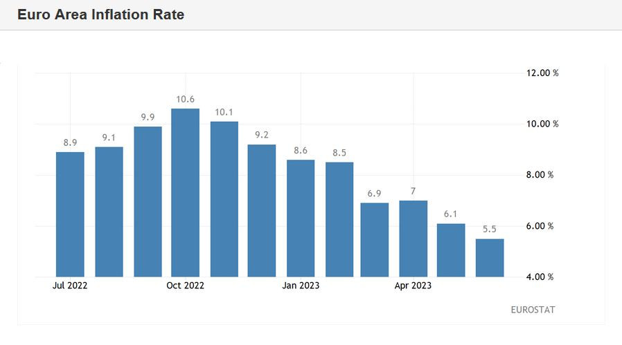 EUR/USD. Общая инфляция в еврозоне продолжает снижаться, оказывая давление на евроИнстаФорекс - Instaforex, 2 года назад Отчёт по росту инфляции в еврозоне оказался не на стороне единой валюты. Релиз вышел в «красной зоне», хотя и отразил рост базового индекса потребительских цен. И всё же покупатели eur/usd явно разочарованы, особенно после достаточно мощного «немецкого превью»: обнародованный вчера отчёт по росту инфляции в Германии удивил своим зелёным окрасом, усилив ожидания трейдеров относительно динамики общеевропейской инфляции. Но эти ожидания не оправдались. Сегодняшний релиз, конечно, не сможет отменить июльское повышение ставок ЕЦБ, но при этом он затуманивает дальнейшие перспективы ужесточения монетарной политики. Тем более что последнее выступление Кристин Лагард не отличалось ястребиностью: она стала использовать более осторожные формулировки, особенно когда речь заходила о постиюльском периоде. Поэтому сегодня медведи eur/usd могут праздновать тактическую победу. По итогам недели многие фундаментальные факторы оказались на их стороне. Языком сухих цифр Вчерашний релиз данных по росту инфляции в Германии сыграл злую шутку для покупателей eur/usd. Выяснилось, что инфляция в стране росла более высокими темпами, чем ожидалось ранее. Например, общий индекс потребительских цен в годовом выражении вышел в июне на отметке до 6,3% при прогнозе спада до 6,2% (майское значение – 6,1%). Годовой гармонизированный индекс потребительских цен (HICP), который Европейский Центробанк предпочитает использовать для измерения инфляции, оказался на отметке 6,8%, тогда как в мае этот показатель был на уровне 6,2%. Немецкие данные, как правило, коррелируют с общеевропейскими, поэтому ожидания рынка носили соответствующий характер. Но ожидания не оправдались. Так, общий индекс потребительских цен в еврозоне снизился до 5,5% при прогнозе спада до 5,6% и предыдущем значении 6,1%. Это самый медленный темп роста показателя с марта прошлого года. Стержневой индекс, без учёта волатильных цен на энергию и продукты питания, немного подрос после двухмесячного спада (до 5,4%), хотя эксперты прогнозировали более существенный рост – до 5,7%. Здесь необходимо напомнить, что глава ЕЦБ Кристин Лагард в ходе своего последнего выступления (на форуме в Синтре) немного смягчила свою риторику, озадачив покупателей eur/usd. И хотя глава ЕЦБ в очередной раз заявила о том, что Центробанк на июльском заседании, вероятно, повысит ставки на 25 пунктов, она воздержалась от подтверждения каких-либо дальнейших шагов позднее в этом году. Ранее её риторика носила более смелый характер – она весьма прозрачно намекала на дальнейшие повышения после июльского заседания. Последствия релиза Опубликованный сегодня релиз рынок рассматривает через призму озвученной Лагард позиции – очевидно, что дальнейшие шаги в сторону ужесточения монетарной политики оказались под вопросом. На фоне такой фундаментальной картины евро оказался под давлением. А вот доллар в последнее время лишь снимает сливки, пользуясь благоприятным моментом. Во-первых, Джером Пауэлл, словно отзеркаливая свою коллегу из ЕЦБ, ужесточил свою риторику, заявив, что большинство членов регулятора ожидает «два и более» повышения ставки в рамках текущего года. Во-вторых, опубликованные вчера данные по росту экономики США оказались в «зе
