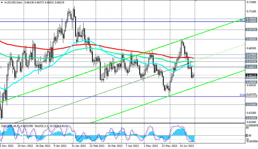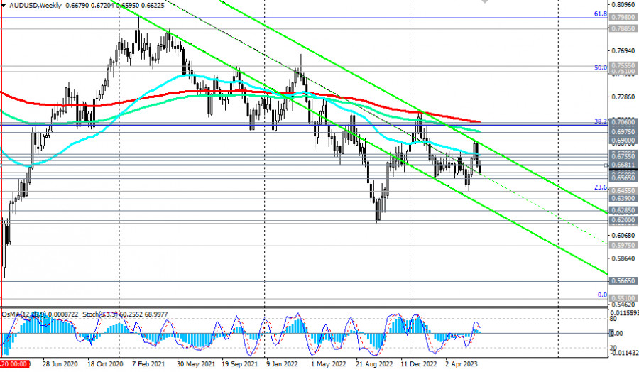 AUD/USD: сценарии динамики на 30.06.2023ИнстаФорекс - Instaforex, 2 года назад Как мы отметили в нашем сегодняшнем Фундаментальном анализе, австралийский доллар позитивно отреагировал на неожиданное решение РБА повысить процентную ставку на июньском заседании. С отметки 0.6500 цена выросла на 400 пунктов, к локальному уровню сопротивления 0.6900 (через эту отметку также проходит верхняя граница вновь сформированного нисходящего канала на недельном графике), продолжив развивать с начала месяца восходящую коррекцию. Однако впоследствии, и особенно после завершившегося 14 июня заседания ФРС, AUD/USD резко снизилась с отметки 0.6900, последовательно пробив 3 важных среднесрочных уровня поддержки 0.6755 (ЕМА200 на дневном графике), 0.6725 (ЕМА144 на дневном графике), 0.6690 (ЕМА50 на дневном графике). На этой неделе цена протестировала локальный уровень поддержки 0.6600. Пробой локального уровня поддержки 0.6565 станет подтверждающим сигналом возрождения долгосрочной нисходящей динамики AUD/USD, направив пару в сторону нижней границы вышеуказанного нисходящего канала, проходящей в настоящий момент вблизи локальных минимумов (с апреля 2020 года) и отметок 0.6200, 0.6285. Ниже ключевых уровней сопротивления 0.7060 (ЕМА200 на недельном графике), 0.7040 (ЕМА50 на месячном графике и уровень Фибоначчи 38,2% коррекции в волне снижения с уровня 0.9500 к уровню 0.5510) AUD/USD остается в зоне долгосрочного медвежьего рынка, а ниже уровней сопротивления 0.6755, 0.6725 и в зоне среднесрочного медвежьего рынка, что делает короткие позиции предпочтительными в текущей ситуации. Технические индикаторы OsMA и Стохастик на дневном графике также находятся на стороне продавцов. В альтернативном сценарии первым сигналом для возобновления длинных позиций может стать пробой вчерашнего внутридневного максимума 0.6640, а подтверждающим – пробой краткосрочных уровней сопротивления 0.6681 (ЕМА200 на 1-часовом графике) и 0.6690 (ЕМА50 на дневном графике и ЕМА200 на 4-часовом графике). Пробой ключевого уровня сопротивления 0.6755 и уровня сопротивления 0.6780 (ЕМА50 на недельном графике) откроет дорогу для дальнейшего роста к ключевым уровням сопротивления 0.6975 (ЕМА144 на недельном графике), 0.7040, 0.7060, отделяющих долгосрочный медвежий рынок от бычьего (об особенностях торговли парой AUD/USD см. в статье AUD/USD: валютная пара (характеристики, рекомендации). Уровни поддержки: 0.6600, 0.6565, 0.6500, 0.6455, 0.6390, 0.6285, 0.6200, 0.6170 Уровни сопротивления: 0.6640, 0.6681, 0.6690, 0.6700, 0.6725, 0.6755, 0.6780, 0.6800, 0.6900, 0.6975, 0.7000, 0.7040, 0.7060 *) копирование сигналов в Instaforex - https://www.instaforex.com/ru/forexcopy_system?x=P... **) ПАММ-система в Instaforex - https://www.instaforex.com/ru/pamm_system?x=PKEZZ ***) открыть торговый счет в Instaforex - https://www.instaforex.com/ru/fast_open_live_accou... https://www.instaforex.com/ru/open_live_account?x=... Материал предоставлен компанией InstaForex - www.instaforex.com |