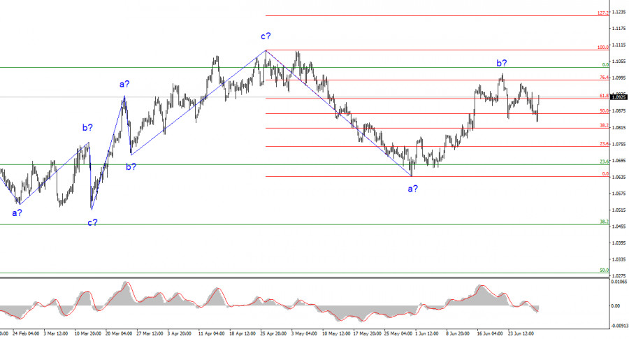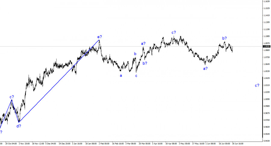 Анализ EUR/USD. 30 июня. Американцы обрадовались падению европейской инфляцииИнстаФорекс - Instaforex, 2 года назад Волновая разметка 4-часового графика для инструмента Евро/Доллар продолжает оставаться не совсем стандартной, но при этом вполне понятной. Весь восходящий участок тренда, берущий свое начало еще 15 марта, может еще принять более сложную структуру, но в данное время я рассчитываю на построение понижательного участка тренда, который, вероятнее всего, тоже получится трехволновым. В течение последнего времени я регулярно говорил, что жду инструмент около 5-й фигуры, откуда в свое время и началось построение повышательной трехволновки. Пока я от своих слов не отказываюсь. Предполагаемая волна b могла завершить свое построение на этой неделе, на что указывает последующий отход котировок от достигнутых пиков. Однако в свете последних событий и особенно движений инструмента GBP/USD я разработал альтернативную волновую разметку, которая предполагает, что весь участок тренда между 15 марта и 26 апреля – это одна волна а. Если это действительно так, то следующая волна – b, а сейчас мы наблюдаем построение повышательной волны с. В этом случае волновые разметки британца и европейца совпадают и все становится на свои места. Если это предположение верно, европеец с текущих позиций возобновит повышение к 11 фигуре и выше. Инфляция в ЕС снизилась, как и ожидалосьКурс инструмента Евро/Доллар в пятницу повысился на 60 базовых пунктов. До открытия американской сессии инструмент снижался, а после открытия – рос. Утром вышел индекс потребительских цен в Евросоюзе, в июне он снизился с 6,1% г/г до 5,5%, что чуть ниже ожиданий рынка. В целом я могу сказать, что ожидания рынка были удовлетворены. Что означает снижение инфляции в рамках прогноза? То, что инфляция продолжает замедляться по плану. Следовательно, и ЕЦБ может продолжать действовать по своему плану, который в данное время предполагает повышение процентной ставки в июле. Что будет дальше, рассуждать сейчас я не хочу, так как до сентября может много чего случится на валютном рынке и в мире. Скажу только, что американцы явно обрадовались снижению инфляции в еврозоне, так как спрос на евровалюту начал расти именно во второй половине дня. А важных отчетов или отчетов, значения которых могли бы удивить рынок, в США не было. Я склонен считать, что американцы отыгрывали утренний отчет по инфляции в ЕС. Общие выводыИсходя из проведенного анализа, я делаю вывод, что продолжается построение понижательного участка тренда. Инструмент вновь имеет довольно большой простор для снижения. Я по-прежнему считаю цели в районе 1,0500-1,0600 вполне реальными, и с этими целями я и советую продажи инструмента по сигналам индикатора MACD «вниз». Предполагаемая волна b, судя по всему, завершена. По альтернативной разметке восходящая волна получится протяженнее и сложнее, но уверенности в том, что она примет более сложный вид у меня нет. Я не считаю, что новостной фон сейчас в большей степени поддерживает евро. На старшем волновом масштабе волновая разметка восходящего участка тренда приняла протяженный вид, но, вероятно, завершена. Мы увидели пять волн вверх, которые, вероятнее всего, являются структурой a-b-c-d-e. Далее инструмент построил две трехволновки, вниз и вверх. Сейчас, вероятно, находится в стадии построения еще одной нисходя