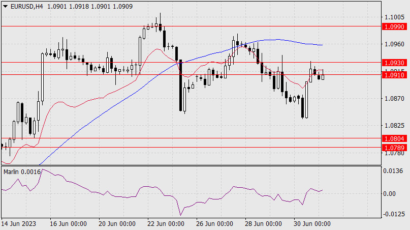 Прогноз по EUR/USD на 3 июля 2023 годаИнстаФорекс - Instaforex, 2 года назад EUR/USD Сегодня выйдет индекс деловой активности в производственном секторе США за июнь (ISM), прогноз 47,2 против 46,9 в мае. Завтра по Германии может оказаться пониженное торговое сальдо в майской оценке, поэтому прорыв евро целевого диапазона 1.0910/30, который был уже отработан в пятницу, выглядит менее вероятным, нежели его снижение.