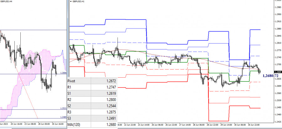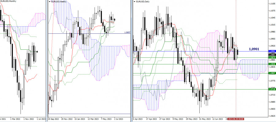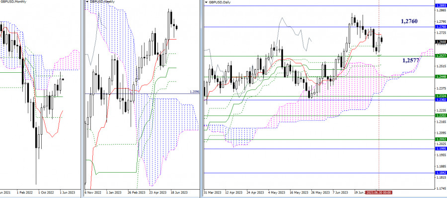 EUR/USD и GBP/USD 3 июля – технический анализ ситуацииИнстаФорекс - Instaforex, 2 года назад EUR/USD Старшие таймфреймы Прошёл ещё один месяц. Игроки на понижение в июне не согласились продолжить майское снижение и отдали инициативу сопернику, который стремился максимально восстановить свои позиции, но при этом всё же потерпел неудачу и не смог обновить максимум (1,1096). В сложившейся ситуации сохраняется работа в зоне дневной и недельной нисходящей коррекции, поэтому игрокам на повышение в первую очередь важно обновить максимальные экстремумы (1,1012 – 1,1096), лишь после этого появятся новые перспективы. Для игроков на понижение основное внимание сейчас сводится к тому, чтобы избавиться от зоны притяжения и влияния сразу нескольких сильных уровней Ишимоку различных временных интервалов (1,0901 – 1,0875 – 1,0846 – 1,0807 – 1,0738). Это позволит ликвидировать дневной и недельный золотые кресты Ишимоку, вернувшись к задаче по обновлению майского минимума (1,0636) и продолжению снижения. Н4 – Н1 На младших таймах тестируются на прочность ключевые уровни 1,0893 – 1,0912 (центральный Пивот уровень + недельная долгосрочная тенденция). Работа ниже ключевых уровней будет отдавать предпочтение медвежьим преимуществам и настроениям. Понижательными ориентирами внутри дня служат поддержки классических Пивот уровней (1,0853 – 1,0797 – 1,0757). Закрепление и работа выше ключевых уровней отдаст преимущество игрокам на повышение. Их ориентирами внутри дня являются сопротивления классических Пивот уровней (1,0949 – 1,0989 – 1,1045). *** GBP/USD Старшие таймфреймы В июне игроки на повышение обновили максимум, продолжили подъём и протестировали зону влияния месячных уровней (1,2760 – 1,2893). Преодоление данных сопротивлений основная задача игроков на повышение. Посмотрим, смогут ли они её решить в июле. Для игроков на понижение по-прежнему важны недельные уровни (1,2577 – 1,2448 – 1,2324) и месячный среднесрочный тренд (1,2302). Н4 – Н1 На младших таймах внимание сейчас сосредоточено на ключевых уровнях, которые объединились в районе 1,2680-72 (центральный Пивот уровень + недельная долгосрочная тенденция). Работа в зоне их притяжения формирует неопределённость, а выход за пределы и развитие движения позволит рассмотреть другие ориентиры. Внутри дня ими являются классические Пивот уровни поддержки (1,2619 – 1,2544 – 1,2491) и сопротивления (1,2747 – 1,2800 – 1,2875). *** При техническом анализе ситуации использованы: старшие таймфреймы – Ichimoku Kinko Hyo (9.26.52) + уровни Фибо Киджун; младшие таймфреймы – Н1 – Pivot Points (классические) + Moving Avarage 120 (недельная долгосрочная тенденция). Материал предоставлен компанией InstaForex - www.instaforex.com |