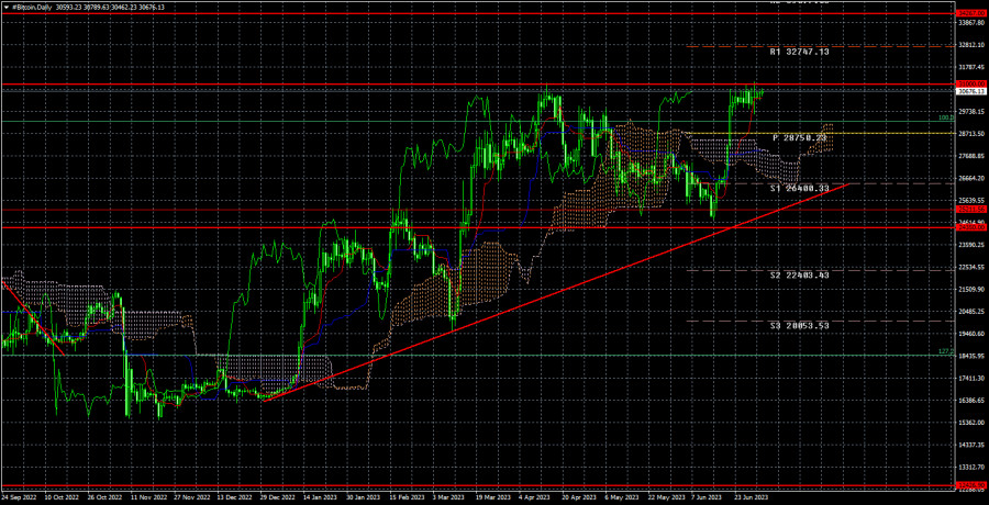 Биткоин вернулся к уровню 31 000$. Что дальше?ИнстаФорекс - Instaforex, 2 года назад Биткоин за прошлую неделю не показал никаких интересных движений. После блицкрига на $6 000 вверх криптовалюта успокоилась и в последние 10 торговых дней располагается точно под уровнем $31 000, который выступает сильным сопротивлением. Помимо этого, $31 000 – это последний локальный максимум на 24-часовом ТФ, поэтому он имеет особое значение. Иными словами, если этот уровень будет преодолен, тогда шансы на дальнейший рост «битка» резко вырастут. Напомним, что последний виток восходящего движения начался из области $24 350–$25 211, которую мы не раз выделяли. С точки зрения техники биткоин движется в последние месяцы практически идеально. Также отметим, что восходящая линия тренда остается актуальной, следовательно сохраняется и восходящая тенденция. Все последние события, связанные с ФРС, вряд ли могли или должны были оказывать поддержку биткоину, так как риторика Джерома Пауэлла ужесточилась, а планы ФРС по ставке стали еще более «ястребиными». Поэтому биткоин скорее должен показать новый виток падения, чем продолжать рост. Напомним, что мы скептически смотрим на дальнейший рост криптовалюты, но напоминаем, что рынок – это совокупность огромного количества игроков, поэтому предугадать направление движение в принципе всегда очень сложно. Мы стараемся следовать за трендом и реагировать не его изменения. Сейчас этих изменений нет, поэтому весь вопрос заключается в уровне $31 000. Из последних фундаментальных событий мы можем выделить только отчет по инфляции в США, который показал очередное замедление, что, вроде бы, должно было умерить пыл ФРС по ужесточению монетарной политики. Но этого не произошло. Судебная тяжба между SEC и криптовалютными биржами Coinbase и Binance продолжается, поэтому рынок находится в напряжении, ибо предугадать, чем закончится это противостояние, невозможно. Мы считаем, что в данное время техника должна находиться на первом месте для трейдеров, так как биткоин вновь показывает способность расти при неблагоприятном фундаментальном фоне. Текущая неделя будет очень важной с точки зрения макроэкономических отчетов, но они вряд ли окажут сильное сиюминутное влияние на курс первой криптовалюты в мире. На 24-часовом таймфрейме биткоин завершил виток нисходящей коррекции около уровня $25 211. Криптовалюта быстро взлетела вверх, но нисходящая коррекция может быть еще не завершена. Если около уровня $31 000 цена развернется вниз или последует отскок от этого уровня, то падение может возобновиться, и вновь будут актуальными продажи с целью области $24 350–$25 211. Если же уровень $31 000 будет преодолен, то логичными станут новые покупки с целью $34 267. Материал предоставлен компанией InstaForex - www.instaforex.com |