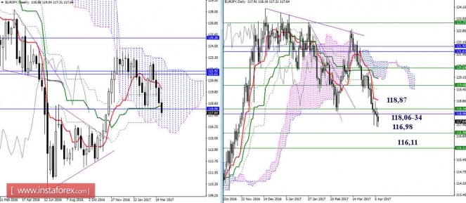 Дневной обзор GBP/JPY и EUR/JPY на 07.04.17. Индикатор ИшимокуИнстаФорекс - Instaforex, 8 лет назад GBP/JPY Обновили минимум, теперь консолидируемся. Центром притяжения сейчас является недельный Сенкоу Спан А (138,10). Тем не менее преимущество по-прежнему сохраняется на стороне игроков на понижение, их ближайший ориентир 136,44-62 (недельный Киджун + месячный Тенкан + минимальный экстремум). Сопротивления сейчас формируют две важные зоны 138,56-82 (дневной крест) и 139,40-90 (недельный Фибо Киджун + недельный Тенкан). Отработанная цель на пробой облака Н4 продолжает служить надёжной поддержкой. Преодоление цели открывает дорогу в район 136,44-62. Наиболее важные сопротивления младших таймфреймов сегодня расположены на 138,10 (Тенкан Н4 + Киджун Н1 + облако Н1 + Сенкоу Спан А недель) и 138,56-82 (Киджун Н4 + облако Н4 + дневной крест). Закрепление пары выше данных рубежей вернёт начальные преимущества игрокам на повышение и сформирует повышательные цели на пробой облаков Н1 и Н4. EUR/JPY Игроки на понижение не оставляют надежд и попыток продолжить снижение, но притяжение уровней 118,06-34 (недельный Киджун + месячный Тенкан) пока сохраняет своё влияние. Следующими понижательными ориентирами являются недельный Фибо Киджун (116,98) и нижняя граница недельного облака (116,11). Индикатор Ишимоку на младших таймфреймах на стороне медведей. В случае продолжения снижения ближайшим ориентиром служит 116,98 (недельный Фибо Киджун). Наиболее важной зоной сопротивлений для младших временных интервалов сейчас является район 118,06-34 (уровни старших таймов + крест Н4 + облако Н1). Закрепление выше изменит баланс сил, сформирует повышательную цель Н1 и откроет дорогу к облаку Н4, усиленному сейчас дневным краткосрочным трендом (118,87). Параметры индикатора: все временные интервалы 9 – 26 – 52 Цвет линий индикатора: Тенкан (краткосрочный тренд) – красный, Киджун (среднесрочный тренд) – зелёный, Фибо Киджун – зеленый пунктир, Чинкоу – серый, облака : Сенкоу Спан Б (SSB, долгосрочный тренд) – синий, Сенкоу Спан А (SSA) – розовый. Цвет дополнительных линий: поддержки и сопротивления MN – синий, W1 – зелёный, D1 – красный, Н4 – розовый, Н1 – серый, горизонтальные уровни (не Ишимоку) – коричневый, трендовые линии – фиолетовый. С уважением, аналитик компании ИнстаФорекс Надежда Жижко Материал предоставлен компанией InstaForex - www.instaforex.com |