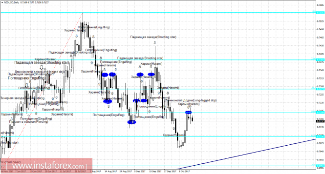 Свечной анализ NZD/USD на 18 октябряИнстаФорекс - Instaforex, 8 лет назад 4h Бычья свечная формация «Харами», образовавшаяся на 4-часовом графике, позволяла ожидать некоторый рост, но медвежья формация «Харами» сработала в пользу доллара США и возобновления падения в направлении уровня коррекции 61,8% - 0,7101. Образование 18 октября новой бычьей формации будет идентифицировано как коррекционный сигнал и вновь позволит ожидать разворот в пользу валюты Новой Зеландии и некоторый рост котировок в направлении уровня Фибо 50,0% - 0,7187. Закрепление пары над уровнем коррекции 50,0% повысит шансы на дальнейший рост в направлении следующего уровня Фибо 38,2% - 0,7275. Сетка Фибо построена по экстремумам от 11 мая 2017 года и 27 июля 2017 года. Daily Отбой котировок на 24-часовом графике от уровня коррекции 50,0% - 0,7189 и медвежьи формации «Харами» и «Длинноногий Доджи» позволили выполнить разворот в пользу валюты США и начать падение в направлении коррекционного уровня 61,8% - 0,7100. Образование бычьей формации сработает в пользу новозеландской валюты и возврата пары к уровню Фибо 50,0%. Любая бычья формация будет трактоваться как трендовый сигнал. Закрепление курса над уровнем коррекции 50,0% повысит вероятность продолжения роста в направлении уровня Фибо 38,2% - 0,7274. Сетка Фибо построена по экстремумам от 11 мая 2017 года и 27 июля 2017 года. Материал предоставлен компанией InstaForex - www.instaforex.com |