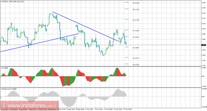 Технический анализ природного газа за 18 октября 2017 годаИнстаФорекс - Instaforex, 8 лет назад 4-часовой таймфрейм Анализ: Цена на природный газ начала новый виток коррекционного движения против восходящей тенденции, не сумев преодолеть уровень сопротивления R1 – 3,0270. Индикаторы Awesome и OsMA развернулись вниз, также сигнализируя о коррекционном движении. Отскок цены от уровня 2,8970 может спровоцировать возобновление движения вверх с целями уровни 2,9770 и 3,0270. Восходящей линии тренда сейчас по-прежнему нет. Торговые рекомендации: По инструменту #NG сейчас рекомендуется рассматривать лонги с целями 2,9770 и 3,0270. Стоп-лосс выставляется ниже ближайшего уровня поддержки. Рекомендуется выставить Stop Loss в зону безубытка при прибыльности сделки 800-1000 пунктов. Отскок от уровня 2,8970 укажет на завершение витка коррекции, как и разворот наверх Awesome или OsMA. Сегодня не ожидается никаких новостей, касающихся газа. Sell-позиции сейчас не актуальны. Помимо технической картины следует также учитывать фундаментальные данные и время их выхода. Пояснения к иллюстрациям: Awesome Oscillator – красные и зеленые бары в окне индикаторов. OsMA – серые бары в окне индикаторов. Линии тренда – синие линии. Уровни поддержки и сопротивления – красные горизонтальные линии.Материал предоставлен компанией InstaForex - www.instaforex.com |