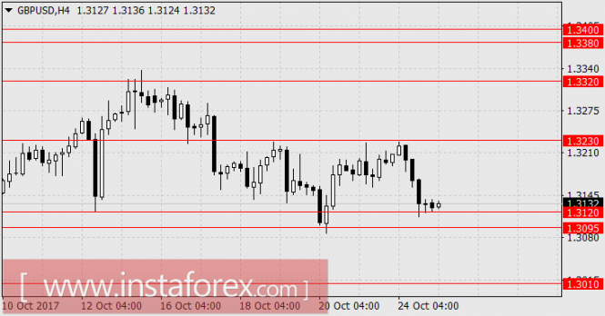Ждём по фунту преодоление диапазона 1.3095-1.3120 с последующим снижением к 1.3010. По евро вероятно снижение к 1.1670, после чего открывается перспектива к 1.1580.