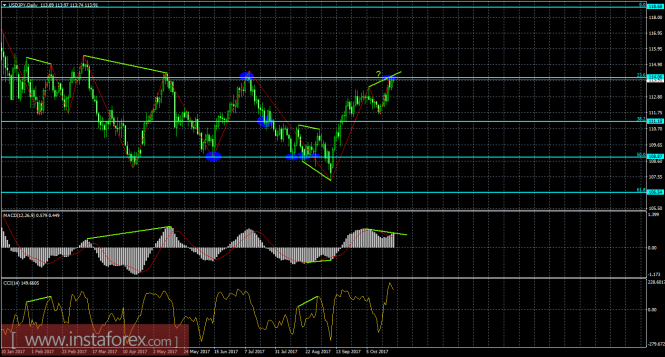 Анализ Дивергенций USD/JPY на 25 октябряИнстаФорекс - Instaforex, 8 лет назад 4h На 4-часовом графике после образования медвежьей дивергенции котировки USD/JPY выполнили некоторое падение в направлении уровня коррекции 76,4% - 112,80. Однако бычья дивергенция у индикатора CCI позволила паре выполнить разворот в пользу американского доллара и возобновить процесс роста в направлении коррекционного уровня 100,0% - 114,51. Отбой котировок от уровня Фибо 100,0% сработает в пользу японской иены и начала падения в направлении уровня коррекции 76,4%. Закрепление курса над уровнем Фибо 100,0% повысит вероятность продолжения роста. Сетка Фибо построена по экстремумам от 11 июля 2017 года и 8 сентября 2017 года. Daily Пара USD/JPY на 24-часовом графике выполнила возврат к уровню Фибо 23,6% - 114,06. По-прежнему назревает медвежья дивергенция у индикатора MACD: последний пик котировок уже выше предыдущего, а аналогичный пик индикатора может получиться ниже предыдущего. Медвежья дивергенция вновь позволит трейдерам рассчитывать на разворот в пользу валюты Японии и некоторое падение в направлении уровня коррекции 38,2% - 111,18. Закрепление курса пары над уровнем коррекции 23,6% повысит шансы дальнейшего роста в направлении следующего уровня Фибо 0,0% - 118,68. Сетка Фибо построена по экстремумам от 24 июня 2016 года и 15 декабря 2016 года. Материал предоставлен компанией InstaForex - www.instaforex.com |