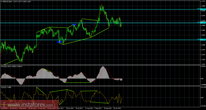 Анализ Дивергенций GBP/USD на 7 ноябряИнстаФорекс - Instaforex, 8 лет назад 4h Без какого-либо сигнала котировки GBP/USD на 4-часовом графике выполнила еще один возврат к уровню коррекции 61,8% - 1,3110 и закрепление над ним. В итоге 7 ноября процесс роста может быть продолжен в направлении следующего коррекционного уровня 50,0% - 1,3214. Отбой курса пары от уровня Фибо 50,0% позволит трейдерам рассчитывать на разворот в пользу валюты США и некоторое падение в направлении уровня коррекции 61,8% - 1,3110. Назревающих дивергенций сегодня не видно. Закрепление пары над уровнем Фибо 50,0% повысит шансы на продолжение роста в направлении следующего уровня коррекции 38,2% - 1,3320. Сетка Фибо построена по экстремумам от 24 августа 2017 года и 20 сентября 2017 года. Daily На 24-часовом графике пара вновь выполнила разворот, в пользу английского фунта стерлингов, и возврат к уровню Фибо 38,2% - 1,3154. Закрепление котировок над уровнем коррекции 38,2% позволит ожидать продолжение начатого роста в направлении коррекционного уровня 50,0% - 1,3507, однако внутридневную тенденцию по-прежнему следует определять на 4-часовом графике. Уровень коррекции 38,2% по-прежнему никакой силой не обладает. Назревающих дивергенций не наблюдается ни у одного индикатора. Сетка Фибо построена по экстремумам от 24 июня 2016 года и 16 января 2017 года. Материал предоставлен компанией InstaForex - www.instaforex.com |