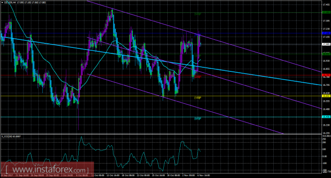 Техническая картина инструмента SILVER по системе «Каналы регрессии» за 7 ноября 2017 годаИнстаФорекс - Instaforex, 8 лет назад 4-часовой таймфрейм Технические данные: Старший канал линейной регрессии: направление – вниз. Младший канал линейной регрессии: направление – вниз. Скользящая средняя (20; сглаженная) – вверх. CCI: 63.0007 Пояснения: Исходя из анализа серебра 7 ноября следует, что цена закрепилась выше мувинга после неудачной попытки преодоления уровня Мюррея «2/8». Старший канал развернулся вниз, что свидетельствует о нисходящем направлении глобального тренда. Младший канал также развернулся вниз, что означает нисходящую тенденцию и в краткосрочном плане. В данный момент цена находится выше мувинга и выше уровня Мюррея «3/8», что делает более вероятным продолжение восходящего движения. Первой целью для движения вверх сейчас является уровень Мюррея «4/8» - 17,188, но рассматривать buy-позиции сейчас не рекомендуется. Если цена преодолеет этот уровень, то следующей актуальной целью для движения вверх будет выступать уровень Мюррея «5/8» - 17,383. Скользящая средняя линия направлена вверх, а цена располагается вверх нее, что сигнализирует о текущем восходящем уклоне. Хайкен Аши окрасил последние бары в фиолетовый цвет, что сигнализирует о текущем восходящем движении, однако длинные позиции сейчас не рекомендуется рассматривать при любой направленности индикатора. Лонги станут актуальными только после разворота хотя бы одного канала наверх. Ордера на продажу можно будет рассматривать ниже скользящей средней линии. Индикатор CCI находится около уровня 100, что сигнализирует о наличие слабой перекупленности инструмента. Ближайшие уровни поддержки: S1 – 16,992 S2 – 16,797 S3 – 16,602 Ближайшие уровни сопротивления: R1 – 17,188 R2 – 17,383 R3 – 17,578 Торговые рекомендации: Проведя анализ серебра, можно сделать вывод, что сейчас не рекомендуется рассматривать любые позиции. Для актуальности ордеров на покупку требуется дождаться разворота вверх любого канала. Для возможности рассмотрения шортов требуется расположение цены ниже мувинга. Помимо технической картины следует также учитывать фундаментальные данные и время их выхода. Пояснения к иллюстрациям: Старший канал линейной регрессии – голубые линии однонаправленного движения. Младший канал линейной регрессии – фиолетовые линии однонаправленного движения. CCI – голубая линия в окне индикатора. Скользящая средняя (20;сглаженная) – голубая линия на графике цены. Уровни Мюррея – разноцветные горизонтальные полосы. Хайкен Аши – индикатор, окрашивающий бары в голубой или фиолетовый цвета.Материал предоставлен компанией InstaForex - www.instaforex.com |
