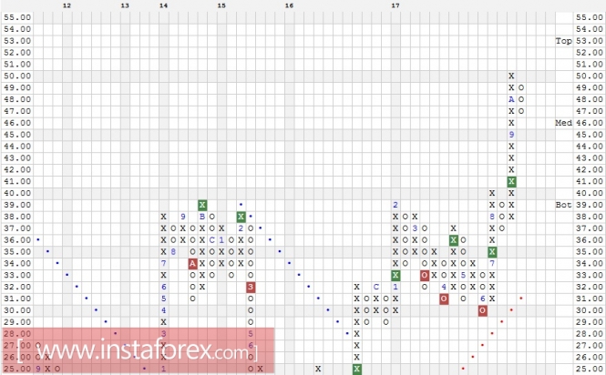 Учитывая довольно длинную колонку "Х", можно ожидать продолжение коррекции в район поддержки 45.