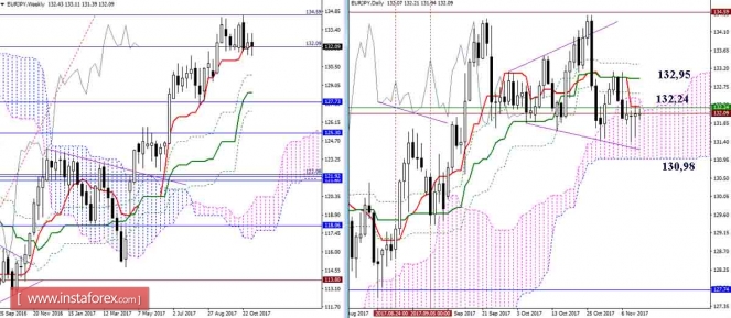 Дневной обзор GBP/JPY и EUR/JPY на 10.11.17. Индикатор ИшимокуИнстаФорекс - Instaforex, 7 лет назад GBP/JPY Игрокам на понижение не хватает сил преодолеть поддержки в нижней части расширяющейся формации и войти в дневное облако. В результате очередное противостояние может закончиться новым тестированием сопротивлений дневного креста. Закрепление выше дневного Тенкана (150,17) позволит рассмотреть возможность подъёма. Сегодня закрываем неделю, реализовать потенциал длинной верхней тени прошлой недельной свечи пока не удалось. Перспективы для снижения не изменились, после пробоя поддержек основным ориентиром для снижения является недельный Тенкан (147,70). В настоящий момент пара продолжает оставаться под наиболее значимыми уровнями 149,24-42, в данной зоне объединили свои усилия многие уровни старших и младших таймов. Преодоление сопротивлений сломает мёртвый крест Н4 и сформирует повышательную цель на пробой облака Н1. Следующим ориентиром для подъёма будет сопротивление облака Н4, усиленного дневным Тенканом (150,17). EUR/JPY Очередная попытка медведей продолжить снижение, ориентиром которого сейчас выступает нижняя граница дневного облака (130,98), завершилась образованием длинной нижней тени дневной свечи, тем не менее пара сохранила своё расположение в дневном облаке под сопротивлениями 132,24-26 (дневной Тенкан + недельный Тенкан). Закрепление выше сопротивлений и выход из облака, скорее всего, вернёт пару в центр сложившегося движения к дневному Киджуну (132,95). Ситуация не претерпела существенных изменений. Развитие событий продолжает упираться в 132,24 (Киджун Н4 + уровни старших таймов). В случае преодоления данного уровня роль сопротивления будет принадлежать облаку Н4, которое усилено сейчас уровнями дневного креста во главе с дневным Киджуном (132,95). Параметры индикатора: все временные интервалы 9 – 26 – 52 Цвет линий индикатора: Тенкан (краткосрочный тренд) – красный, Киджун (среднесрочный тренд) – зелёный, Фибо Киджун – зеленый пунктир, Чинкоу – серый, облака : Сенкоу Спан Б (SSB, долгосрочный тренд) – синий, Сенкоу Спан А (SSA) – розовый. Цвет дополнительных линий: поддержки и сопротивления MN – синий, W1 – зелёный, D1 – красный, Н4 – розовый, Н1 – серый, горизонтальные уровни (не Ишимоку) – коричневый, трендовые линии – фиолетовый. Материал предоставлен компанией InstaForex - www.instaforex.com |