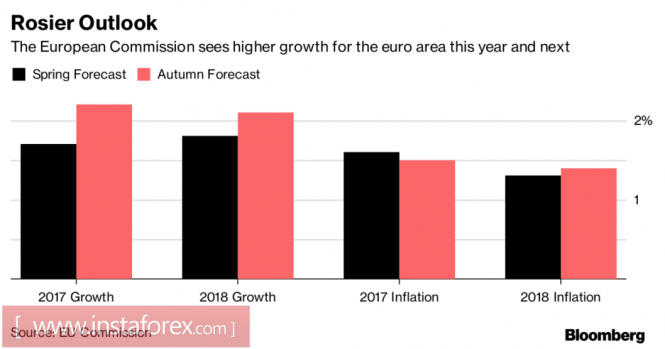 EUR/USD требует реформИнстаФорекс - Instaforex, 7 лет назад В то время как американский доллар столкнулся с разочарованием после представления проекта налоговой реформы республиканцами из Сената, снижение политических рисков в еврозоне и оптимизм относительно перспектив ее экономики постепенно возвращают на рынок «быков» по EUR/USD. Европейская комиссия повысила прогноз роста ВВП еврозоны с 1,7% до 2,2% в 2017 и с 1,8% до 2,1% в 2018, отметив улучшение ситуации на рынке труда, твердую поступь экономики, увеличение инвестиций и постепенное сокращение дефицита и госдолга. Авторитетная организация ожидает, что в течение следующих двух лет рост занятости в странах валютного блока ускорится, а безработица к концу 2019 упадет до отметки 7,9%. Прогнозы по ВВП и инфляции еврозоны Источник: Bloomberg. Оптимизм витал и в словах члена Управляющего совета Бенуа Кере, который отметил, что основными причинами лучшей динамики экономики валютного блока за пару десятилетий являются: ультрамягкая монетарная политика ЕЦБ, девальвация евро, а также низкие цены на сырьевые товары. Бесконечно долго эти факторы действовать не могут, поэтому правительствам нужно поспешить с реализацией реформ, которые позволят региону выдержать будущий кризис. Надежного экономического роста и ухода в тень политических рисков после благополучного разрешения конфликта в Каталонии пока недостаточно для восстановления восходящего тренда по EUR/USD. Если весной-летом пара росла на ожиданиях нормализации денежно-кредитной политики ЕЦБ, то в октябре Марио Драги перекрыл кислород «быкам», заявив о сохранении приверженности регулятора к монетарной экспансии. Самым трудным месяцем для евро представляется ноябрь, когда объем покупок активов в рамках QE с учетом реинвестиций достигнет максимальной отметки в месячном исчислении за период с ноября 2017 по октябрь 2018. Затем он будет снижаться, и в первом квартале не дотянет до 40 млрд евро в месяц. Не следует забывать, что в декабре региональная валюта традиционно выглядит сильно за счет притока туристов в Старый свет на Рождественские праздники. Что касается доллара, то его мучают проблемы личного характера. Множество разногласий по налоговой реформе заставляет сомневаться в ее быстром прохождении через Конгресс. Неопределенность будет способствовать росту спроса на надежные активы, падению доходности казначейских облигаций и снижению индекса USD. Главными трудностями видится несогласие сенаторов и президента США по налоговым вычетам, а также разный подход Палаты представителей и Сената к срокам снижения корпоративного налога с 35% до 20%. Все прекрасно понимают, что скорый старт реформы разогреет американскую экономику до состояния кипения, что резко увеличит риски рецессии. Другое дело 2019 год. Без бюджетного стимула ВВП, вероятнее всего, замедлится в 2018, и его использование с задержкой позволит рассчитывать на продление и без того немаленького срока восстановления экономики США. Технически прорыв сопротивлений на 1,169 и 1,172 усилит риски реализации таргета на 88,6% по перевернутому паттерну «Акула». EUR/USD, дневной график Материал предоставлен компанией InstaForex - www.instaforex.com |
