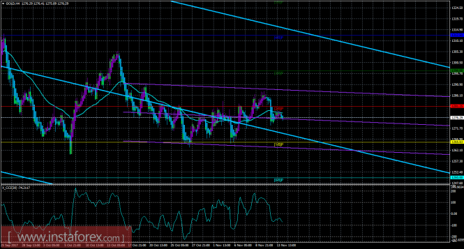 Техническая картина инструмента GOLD по системе «Каналы регрессии» за 14 ноября 2017 годаИнстаФорекс - Instaforex, 7 лет назад 4-часовой таймфрейм Технические данные: Старший канал линейной регрессии: направление – вниз. Младший канал линейной регрессии: направление – вниз. Скользящая средняя (20; сглаженная) – вбок. CCI: -74.2117 Пояснения: Техническая картина золота 14 ноября показывает, что цена закрепилась ниже скользящей средней линии, но продолжить движение вниз пока не может. Старший канал направлен вниз, что свидетельствует о нисходящей тенденции в долгосрочном плане. Младший канал также направлен вниз, что означает нисходящую тенденцию и в среднесрочном плане. Сейчас цена находится ниже скользящей средней и ниже уровня Мюррея «2/8», что прогнозирует нисходящее направление движения в ближайшее время. Первой целью для движения вниз, таким образом, остается уровень Мюррея «1/8» - 1265,63. Если этот таргет будет преодолен, то новой актуальной целью будет выступать уровень Мюррея «0/8» - 1250,00. Скользящая средняя направлена вбок, а цена располагается ниже нее, поэтому сейчас более вероятно нисходящее движение. Хайкен Аши окрасил последние бары в фиолетовый цвет, что указывает на локальное движение вверх, разворот индикатора вниз укажет на завершение витка коррекции, а шорты вновь станут доступными для открытия. Buy-позиции можно будет рассматривать не ранее закрепления цены выше мувинга и разворота вверх хотя бы одного канала. Индикатор CCI находится около уровня -100, что сигнализирует о наличие слабой перепроданности инструмента. Ближайшие уровни поддержки: S1 – 1265,63 S2 – 1250,00 S3 – 1234,38 Ближайшие уровни сопротивления: R1 – 1281,25 R2 – 1296,88 R3 – 1312,50 Торговые рекомендации: Исходя из анализа движения курса золота, можно сделать вывод, что сейчас рекомендуется рассматривать короткие позиции с целью 1265,63. Второй таргет – 1250,00. Уровень стопа рекомендуется располагать выше мувинга и по мере его понижения переносить вниз и S/L. При прохождении 1000-1500 пунктов Stop Loss можно переносить на нулевой уровень. Открывать новые sell-позиции можно будет в случае окраса индикатором Хайкен Аши 1-2 баров (в зависимости от размера) в голубой цвет (один такой бар уже сформирован) при расположении цены ниже мувинга. T/P можно размещать чуть выше ближайших целей. Лонги сейчас не являются актуальными. Помимо технической картины следует также учитывать фундаментальные данные и время их выхода. Пояснения к иллюстрациям: Старший канал линейной регрессии – голубые линии однонаправленного движения. Младший канал линейной регрессии – фиолетовые линии однонаправленного движения. CCI – голубая линия в окне индикатора. Скользящая средняя (20;сглаженная) – голубая линия на графике цены. Уровни Мюррея – разноцветные горизонтальные полосы. Хайкен Аши – индикатор, окрашивающий бары в голубой или фиолетовый цвета.Материал предоставлен компанией InstaForex - www.instaforex.com |