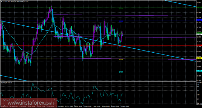 Техническая картина инструмента SILVER по системе «Каналы регрессии» за 14 ноября 2017 годаИнстаФорекс - Instaforex, 7 лет назад 4-часовой таймфрейм Технические данные: Старший канал линейной регрессии: направление – вниз. Младший канал линейной регрессии: направление – вбок. Скользящая средняя (20; сглаженная) – вбок. CCI: 0.5112 Пояснения: Исходя из анализа серебра 14 ноября следует, что цена закрепилась обратно выше мувинга, не сумев преодолеть уровень Мюррея «2/8». Старший канал направлен вниз, что свидетельствует о нисходящем направлении глобального тренда. Младший канал развернулся вбок, что означает возможную смену тенденции на восходящую в краткосрочном плане. В данный момент цена находится выше мувинга и выше уровня Мюррея «2/8», что делает более вероятным продолжение восходящего движения. Первой целью для движения вверх сейчас является уровень Мюррея «4/8» - 17,188, но рассматривать buy-позиции сейчас не рекомендуется. Если цена преодолеет этот уровень, то следующей актуальной целью для движения вверх будет выступать уровень Мюррея «5/8» - 17,383. Скользящая средняя линия направлена вбок, а цена располагается вверх нее, что сигнализирует о текущем восходящем уклоне. Хайкен Аши окрасил последние бары в фиолетовый цвет, что сигнализирует о текущем восходящем движении, однако лонги сейчас не рекомендуется рассматривать при любой направленности индикатора. Длинные позиции станут актуальными только после разворота хотя бы одного канала наверх. Шорты можно будет рассматривать ниже скользящей средней линии с целью уровень Мюррея «2/8» - 16,797. Индикатор CCI находится около нулевого уровня, что сигнализирует об отсутствии любой перекупленности и перепроданности инструмента. Ближайшие уровни поддержки: S1 – 16,797 S2 – 16,602 S3 – 16,406 Ближайшие уровни сопротивления: R1 – 16,992 R2 – 17,188 R3 – 17,383 Торговые рекомендации: Проведя анализ серебра, можно сделать вывод, что сейчас не рекомендуется рассматривать любые позиции. Для актуальности ордеров на покупку требуется дождаться разворота вверх любого канала. Для возможности рассмотрения шортов требуется закрепление цены ниже мувинга. Помимо технической картины следует также учитывать фундаментальные данные и время их выхода. Пояснения к иллюстрациям: Старший канал линейной регрессии – голубые линии однонаправленного движения. Младший канал линейной регрессии – фиолетовые линии однонаправленного движения. CCI – голубая линия в окне индикатора. Скользящая средняя (20;сглаженная) – голубая линия на графике цены. Уровни Мюррея – разноцветные горизонтальные полосы. Хайкен Аши – индикатор, окрашивающий бары в голубой или фиолетовый цвета.Материал предоставлен компанией InstaForex - www.instaforex.com |