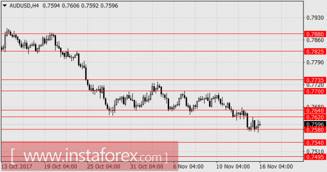Цены на сырьё снижаются по широкому спектру. Нефть -0,3%, железная руда -2,1%, уголь -0,1%, золото -0,2%. Медь прибавляет 0,2%. Завтра американский доллар может получить дополнительный импульс к росту на данных по строительству – число закладок новых домов может увеличиться с 1,13 млн до 1,19 млн. Ждём AUD/USD на 0.7495.