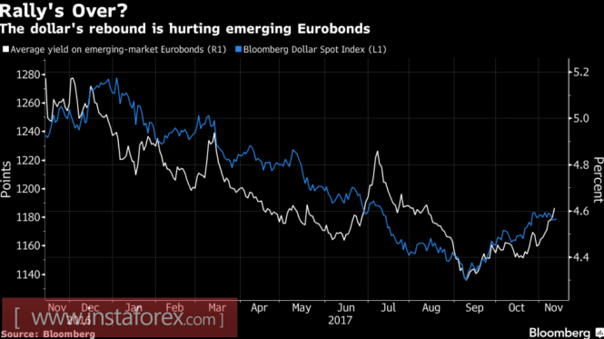 Рубль возвращается в игруИнстаФорекс - Instaforex, 7 лет назад Позитивная статистика по Штатам укрепила позиции не только доллара США, но и валют развивающихся рынков. Несмотря на рост базовой инфляции до максимальной отметки с апреля, шансы декабрьской монетарной рестрикции ФРС немного снизились. При этом срочный рынок по-прежнему рассчитывает увидеть два повышения ставки по федеральным фондам в течение 12 месяцев. Медленная нормализация денежно-кредитной политики и сильная мировая экономика во главе со Штатами - что может быть лучше для доходных активов?! Основными причинами роста USD/RUB к уровням 3-месячных максимумов стали масштабные распродажи валют EM, замедление российского ВВП с 2,5% до 1,8% в третьем квартале, рост платежей по внешним долгам РФ в конце года, а также дивергенция в монетарной политике ФРС и Банка России. Опасения из-за потенциальной коррекции S&P500 и связанного с ней ухудшения глобального аппетита к риску заставляли нерезидентов фиксировать прибыль по стратегиям carry trade. Средние спреды по ставкам долговых рынков развивающихся стран и США упали с 395 б.п. в ноябре 2016 до менее чем 300 б.п. Динамика индекса USD и средней доходности бондов EM Источник: Bloomberg. Вместе с тем распродажи MSCI EM идут в рамках коррекции глобального рынка акций, которая в условиях стремительного восстановления мировой экономики не должна быть глубокой. По мнению Morgan Stanley, реальная доходность активов развивающихся стран по-прежнему выглядит супер-привлекательно по сравнению с аналогами из развитых государств. При этом рост производительности в связи с использованием новых технологий будет сдерживать инфляцию, что в условиях нормализации денежно-кредитной политики ЦБ еще больше увеличит разрыв в 2018-2019. Рубль является одним из любимчиков Morgan Stanley в силу консервативной политики Банка России, привлекательных реальных ставок долгового рынка РФ и позитивных перспектив местной экономики. Ее замедление в третьем квартале обусловлено в основном проблемами промышленности. В то же время увеличение доходов населения на 4,3%, инвестиций на 6,3% и потребительского доверия обусловлено ростом реальной зарплаты, ревальвацией рубля и беспрецедентным замедлением инфляции. Динамика ВВП России Источник: Bloomberg. На мой взгляд, нельзя однозначно сказать, что худшее для «медведей» по USD/RUB уже позади. Пара чутко реагирует на новости о налоговой реформе в США. Инвесторы не спешат возвращаться к carry trade, так как по мере появления новых проблем в области прохождения законопроекта через Конгресс усиливаются риски коррекции американских фондовых индексов. Многое будет зависеть от сроков принятия закона и его реализации. Впрочем, даже без бюджетного стимула экономика США выглядит здоровой и продолжает вести за собой остальных. Технически неспособность «быков» по USD/RUB взять штурмом сопротивление на 60,35 свидетельствует об их слабости. Откат после достижения таргета на 200% по паттерну AB=CD и отработки внутреннего бара выглядит закономерным. Успешный тест поддержки на 59,68 усилит риски развития коррекции к 59,2 и 59. USD/RUB, дневной график Материал предоставлен компанией InstaForex - www.instaforex.com |