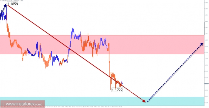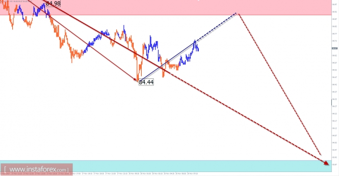 Торговый обзор на 20 ноября по упрощенному волновому анализуИнстаФорекс - Instaforex, 7 лет назад Обзор по EUR/USD с прогнозом на текущий день Ценовые экстремумы мажорной пары евро образовали на дневном масштабе графика фигуру «восходящая растянутая плоскость». Структура волны сформирована. Заключительная часть фигуры (С) достигла стандартного уровня удлинения. При этом сигналов скорого разворота тренда на графике не наблюдается. Сохраняется высокая вероятность продолжения текущей волны, с обновлением уровня локального сентябрьского хая. Стартовавшая в сентябре медвежья волна вступает в завершающую фазу. Ценовой подъем первой декады ноября завершил коррекционную часть волны (В). Начавшееся 15 ноября снижение имеет достаточный для разворота волновой уровень. Сегодня в первой половине дня ожидается ход цены вниз, к границам зоны поддержки. Далее ожидается смена курса и начало ценового роста пары. Границы зон сопротивления: - 1.1780/1.1810 Границы зон поддержки: - 1.1710/1.1680 Обзор по AUD/JPY с прогнозом на текущий день Направление краткосрочного тренда кросса австралийский доллар/йена задает нисходящая волна от 21 сентября. Волна образовалась после контакта более крупной восходящей модели с зоной потенциального разворота, совпадающей с предварительным целевым участком. Верхняя граница ближайшей потенциальной зоны завершения находится в пределах ценовой фигуры от текущего уровня. На ближайшей сессии наиболее вероятен флетовый настрой движения, с восходящим вектором. Бычий участок нужен для завершения полностью срытой коррекции, поэтому размах хода ожидается минимальным. Ближе к концу дня возрастает шанс возврата к основному курсу ценового движения. Волатильность инструмента может резко усилиться. Границы зон сопротивления: - 84.90/85.20 Границы зон поддержки: - 83.90/60 Пояснения к рисункам: Для упрощенного волнового анализа используется простой вид волны, сочетающий в себе 3 части (А;В;С). Из таких волн состоят все виды коррекции и большая часть импульсов. На каждом рассматриваемом тайм-фрейме анализируется последняя, незавершенная волна. Отмеченные на графиках зоны указывают расчетные участки, в которых вероятность смены направления движения значительно повышается. Стрелки указывают волновую разметку по используемой автором методике. Сплошным фоном стрелок указана сформированная структура, пунктирным – ожидаемые волновые движения. Внимание: Волновой алгоритм не учитывает продолжительность движений инструмента по времени. Прогноз не является торговым сигналом! Для проведения торговой сделки требуются подтверждающие сигналы используемых Вами торговых систем. Материал предоставлен компанией InstaForex - www.instaforex.com |