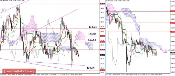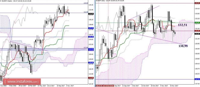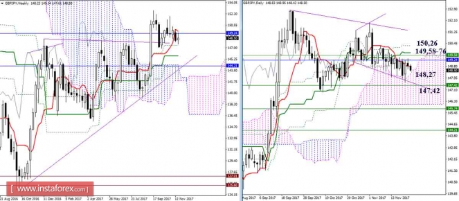 Дневной обзор GBP/JPY и EUR/JPY на 22.11.17. Индикатор ИшимокуИнстаФорекс - Instaforex, 7 лет назад GBP/JPY Несмотря на оптимизм, проявленный после встречи с поддержкой дневного облака, игрокам на повышение до сих пор не удаётся продолжить подъём. Консолидация под сопротивлениями дневного креста (149,25-76 – 150,26) и уровнями более старших таймов (149,24-58) продолжается. Верхняя граница дневного облака (Сенкоу Спан А 148,27) сейчас является ближайшей поддержкой, далее отстаивать интересы игроков на повышение будет недельный Фибо Киджун (147,42). Очередная встреча с сопротивлением облака Н4 не позволяет игрокам на повышение переломить ситуацию в свою пользу. Медвежье облако Н4 по-прежнему является надёжным препятствием на пути быков. Среди поддержек сегодня можно отметить зону 148,50 -27 (Киджун Н4 + Сенкоу Спан Б Н1 + Фибо Киджун Н4 + Сенкоу Спан А дневного облака). Закрепление ниже позволит рассмотреть обновление минимума и снижение к недельной поддержке (147,42). Среди сопротивлений наиболее важным остаётся облако Н4, усиленное уровнями старших таймов (148,80 – 149,24). EUR/JPY Позитивный настрой игроков на повышение, перехвативших в понедельник инициативу, не получил развития. Облако Ишимоку чаще всего является зоной неопределённости. Именно это настроение (неопределённость) доминировало в последние сутки. Ближайшим сопротивлением сегодня служит 132,51 (дневной Тенкан + Сенкоу Спан А), поддержкой является 130,98 (Сенкоу Спан Б дневного облака). Ситуация, с момента последнего анализа, не претерпела существенных изменений. Наиболее важными сопротивлениями, на пути восстановления бычьих интересов и позиций, продолжают оставаться уровни 132,51 – 132,83 – 133,24. Для игроков на понижение, после обновления минимума, наиболее значимым будет являться взаимодействие с поддержкой нижней границы дневного облака (130,98). Параметры индикатора: все временные интервалы 9 – 26 – 52 Цвет линий индикатора: Тенкан (краткосрочный тренд) – красный, Киджун (среднесрочный тренд) – зелёный, Фибо Киджун – зеленый пунктир, Чинкоу – серый, облака : Сенкоу Спан Б (SSB, долгосрочный тренд) – синий, Сенкоу Спан А (SSA) – розовый. Цвет дополнительных линий: поддержки и сопротивления MN – синий, W1 – зелёный, D1 – красный, Н4 – розовый, Н1 – серый, горизонтальные уровни (не Ишимоку) – коричневый, трендовые линии – фиолетовый. Материал предоставлен компанией InstaForex - www.instaforex.com |