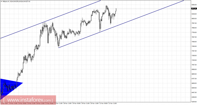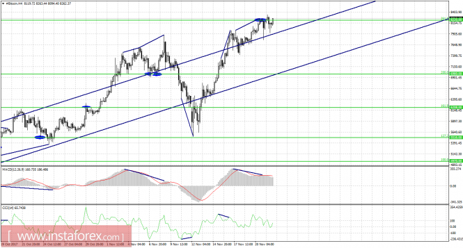 Графический анализ #Bitcoin на 22 ноябряИнстаФорекс - Instaforex, 7 лет назад Лавинообразный рост котировки биткоина продолжается. Только позавчера криптовалюта достигла очередного максимума около отметки 8220,00$ и вроде бы началась коррекция... но нет. За минувший день продолжить падение не удалось, что объясняется опять-таки притоком новых инвесторов и отсутствием позиций на продажу. Таким образом, никаких сдерживающих факторов для дальнейшего роста «битка» сейчас нет. В то же время CME Group опровергла информацию о том, что запуск торговли фьючерсами на биткоин состоится 11 декабря. Однако компания не отказывается от того, что подобный финансовый инструмент появится на бирже, только уточняет, что это произойдет после всех соответствующих проверок регуляторов. Доступность биткоина и на официальных, регулируемых биржах может привлечь новых инвесторов в этот сегмент, что, в свою очередь, может вызвать еще больший спрос на Bitcoin. Котировки «битка» выполнили рост к коррекционному уровню 261,8% - 8220,00$. Медвежья дивергенция у индикатора MACD и отбой от уровня коррекции 261,8% позволили инструменту выполнить лишь минимальное падение. Закрытие над уровнем Фибо 261,8% повысит шансы криптовалюты на дальнейший рост в направлении следующего уровня коррекции 323,6% - 9445,00$. На часовом графике появился новый равноудаленный канал с направлением «вверх». Новых графических паттернов сейчас нет. Торговые рекомендации: Покупки #Bitcoin можно будет рассматривать с целью 9445,00$ при условии закрытия над уровнем Фибо 261,8%. Продавать #Bitcoin можно с целью 6980,00$ и ордером, ограничивающим убытки, выше 8220,00$, однако сильный восходящий тренд сохраняется, а любое падение может быть очень слабым и краткосрочным (как это и было накануне). Заработайте на движениях курса криптовалют с ИнстаФорекс, открыв сделку в терминале MetaTrader4. Материал предоставлен компанией InstaForex - www.instaforex.com |
