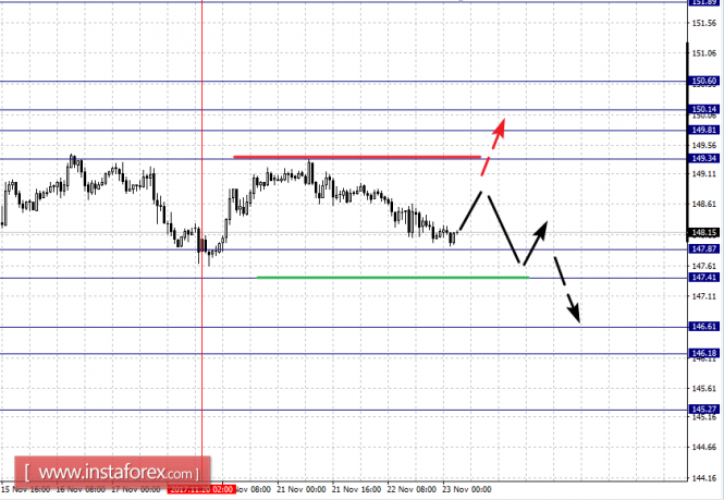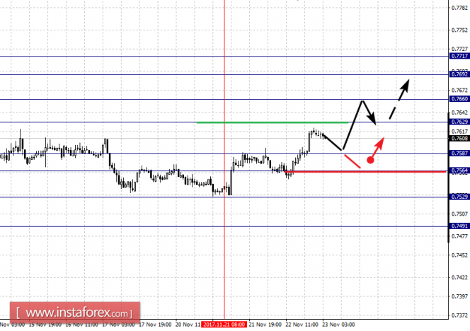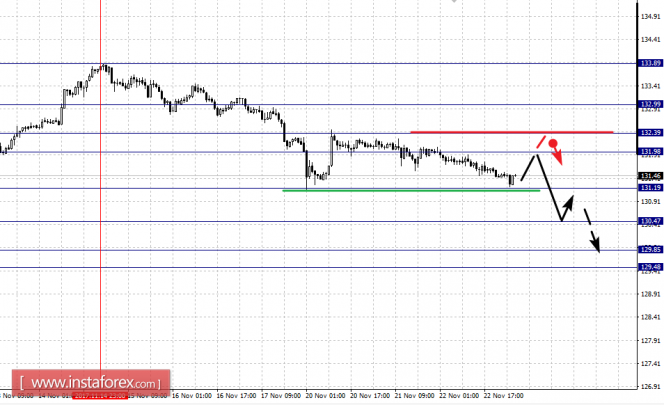 По паре Австралийский доллар/Доллар ключевыми уровнями в масштабе Н1 являются: 0.7717, 0.7692, 0.7660, 0.7629, 0.7587, 0.7564, 0.7529 и 0.7491. Здесь цена формирует потенциал для верха от 21 ноября. Продолжения развития восходящей структуры ожидаем после пробоя 0.7630, в данном случае цель – 0.7660, возле этого уровня консолидация. Пробой 0.7660 должен сопровождаться выраженным движением кверху, в данном случае цель – 0.7692. Потенциальным значением для восходящей тенденции пока считаем уровень 0.7717. Краткосрочное нисходящее движение возможно в коридоре 0.7587 – 0.7564, отсюда высока вероятность разворота кверху, пробой уровня 0.7564 будет располагать к развитию нисходящего движения и здесь цель – 0.7530. Потенциальным значением для низа считаем уровень 0.7491. Основная тенденция – формирование восходящего потенциала от 21 ноября. Торговые рекомендации: Buy: 0.7630 Take profit: 0.7660 Buy: 0.7662 Take profit: 0.7690 Sell: 0.7586 Take profit: 0.7566 Sell: 0.7562 Take profit: 0.7535 По паре Евро/Иена ключевыми уровнями в масштабе Н1 являются: 132.99, 132.39, 131.98, 131.19, 130.47, 129.85 и 129.48. Здесь мы следим за формированием нисходящей структуры от 14 ноября. Продолжения движения книзу ожидаем после пробоя 131.19, здесь цель – 130.47, от этого уровня ожидаем уход в зону начальных условий. Потенциальным значением для нисходящего движения пока рассматриваем уровень 129.48, движение к которому возможно после пробоя 130.44. Краткосрочное восходящее движение ожидаем в коридоре 131.98 – 132.39, пробой последнего значения приведет к углубленному движению, здесь цель – 132.99, этот уровень является ключевой поддержкой для нисходящей структуры от 14 ноября. Основная тенденция – формирование нисходящей структуры от 14 ноября. Торговые рекомендации: Buy: 132.00 Take profit: 132.37 Buy: 132.43 Take profit: 132.95 Sell: 131.15 Take profit: 130.50 Sell: 130.44 Take profit: 129.48