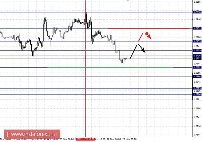 По паре Доллар/Иена ключевыми уровнями в масштабе являются: 112.22, 111.98, 111.66, 111.49, 111.10 и 110.75. Здесь мы продолжаем следить за нисходящей структурой от 6 ноября. Уровень 110.75 является предельным значением до момента выполнения коррекции к верху. Продолжение движения книзу возможно после пробоя 111.10, здесь цель – 110.75, от этого уровня ожидаем разворот. В целом потенциал нисходящей структуры находится на отметке 110.03, однако торговать к данному значению мы не рекомендуем. Краткосрочное восходящее движение возможно в коридоре 111.49 – 111.66, пробой последнего значения приведет к углубленному движению, здесь цель 111.98. До уровня 112.22 мы ожидаем оформления потенциала для восходящего цикла. Основная тенденция: нисходящая структура от 6 ноября. Торговые рекомендации: Buy: 111.50 Take profit: 111.64 Buy: 111.68 Take profit: 111.95 Sell: 111.05 Take profit: 110.87 Sell: Take profit: По паре Канадский доллар/Доллар ключевыми уровнями в масштабе Н1 являются: 1.2791, 1.2755, 1.2729, 1.2714, 1.2682, 1.2656, 1.2623 и 1.2606. Здесь цена формирует потенциал для низа от 21 ноября. Краткосрочное нисходящее движение возможно в коридоре 1.2682 – 1.2656, пробой последнего значения должен сопровождаться выраженным нисходящим движением, здесь цель – 1.2623, в коридоре 1.2623 – 1.2606 консолидация. Уход в коррекцию возможен после прохода 1.2714 – 1.2729, здесь цель – 1.2755, пробой которой будет располагать к формированию начальных условий для верха, в данном случае потенциальная цель – 1.2791. Основная тенденция – формирование нисходящей структуры от 21 ноября. Торговые рекомендации: Buy: 1.2730 Take profit: 1.2755 Buy: 1.2757 Take profit: 1.2790 Sell: 1.2680 Take profit: 1.2660 Sell: 1.2654 Take profit: 1.2625