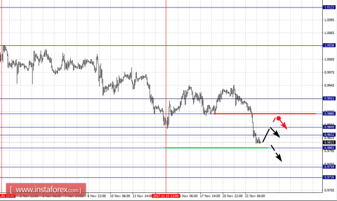 По паре Доллар/Франк ключевыми уровнями в масштабе Н1 являются: 0.9915, 0.9880, 0.9849, 0.9832, 0.9802, 0.9759 и 0.9735. Здесь мы продолжаем следить за нисходящей структурой от 1 ноября. Продолжения движения книзу ожидаем после пробоя 0.9800, в данном случае цель – 0.9759, в коридоре 0.9759 – 0.9735 консолидация цены. Краткосрочное восходящее движение возможно в коридоре 0.9832 – 0.9849, пробой последнего значения приведет к углубленному движению в коррекцию, здесь цель 0.9880. Уровень 0.9915 пока рассматриваем в качестве потенциала для верха, до него ожидаем оформления начальных условий для восходящего цикла. Основная тенденция – нисходящая структура от 1 ноября. Торговые рекомендации: Buy: 0.9832 Take profit: 0.9846 Buy: 0.9850 Take profit: 0.9880 Sell: 0.9800 Take profit: 0.9765 Sell: 0.9755 Take profit: 0.9735