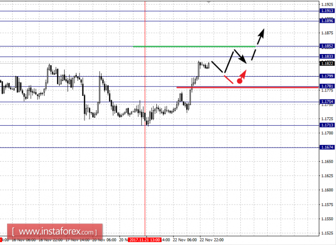 По паре Евро/Доллар ключевыми уровнями в масштабе Н1 являются: 1.1913, 1.1896, 1.1852, 1.1833, 1.1799, 1.1781, 1.1754 и 1.1713. Здесь цена оформила локальную восходящую структуру от 21 ноября для продолжения восходящей тенденции. Продолжения движения кверху ожидаем после прохода ценой шумового диапазона 1.1833 – 1.1852, в данном случае цель – 1.1896, в коридоре 1.1896 – 1.1913 консолидация. Краткосрочное нисходящее движение возможно в коридоре 1.1799 – 1.1781, пробой последнего значения приведет к углубленному движению, здесь цель – 1.1754, этот уровень является ключевой поддержкой для восходящей структуры, его пробой будет располагать к формированию нисходящего движения, здесь цель – 1.1713. Основная тенденция – локальная восходящая структура от 21 ноября. Торговые рекомендации: Buy: 1.1853 Take profit: 1.1894 Buy: Take profit: Sell: 1.1780 Take profit: 1.1756 Sell: 1.1752 Take profit: 1.1715