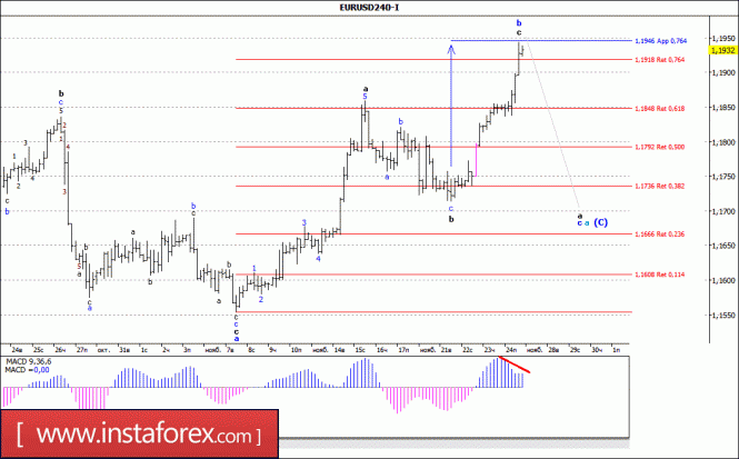 Волновой анализ валютной пары EUR/USD за 27 ноября 2017 годаИнстаФорекс - Instaforex, 7 лет назад Анализ волновой разметки: Пятничную европейскую сессию пара EUR/USD начала с восходящего движения и, прибавив в цене более 100 п.п., завершила торги отработкой отметки 1,1945. При этом можно предположить, что валютная пара оставалась в стадии формирования волны с, в b, в а, в (С), которая к концу дня приняла практически завершенный вид. Если это так, то тестирование уровня 1,1950 может привести к развороту валютной пары в пользу доллара, что в свою очередь, обозначит начало будущей волны с, в а, в (С). Цели для построения нисходящей волны: 1,1736 - 38,2% по Фибоначчи 1,1666 – 23,6% по Фибоначчи Цели для построения восходящей волны: 1,1918 – 76,4% по Фибоначчи 1,1946 – 76,4% по Фибоначчи Общие выводы и торговые рекомендации: Продолжается построение понижательного участка тренда. Сейчас возможно продолжение повышения котировок в рамках предполагаемой волны с, в b, а, в (С) с целями, расположенными около расчетных отметок 1,1918 и 1,1946, что соответствует 76,4% и 76,4% по Фибоначчи. В рамках волны с, в а, в (С) понижение котировок может возобновиться после завершения текущей волны с целями, расположенными ниже 15 фигуры.Материал предоставлен компанией InstaForex - www.instaforex.com |