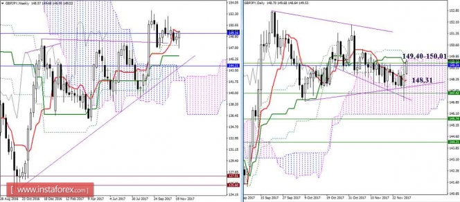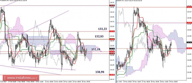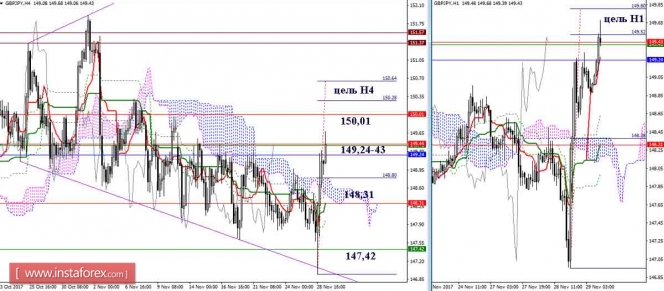 Дневной обзор GBP/JPY и EUR/JPY на 29.11.17. Индикатор ИшимокуИнстаФорекс - Instaforex, 7 лет назад GBP/JPY Игроки на понижение вчера обновили минимумы и протестировали поддержку 147,41 (недельный Фибо Киджун). Очередное снижение медведей вновь получило в ответ достаточно быстрое и активное противодействие быков. В результате к настоящему времени игроки на повышение уже достигли наиболее важных сопротивлений (недельный Тенкан 149,41 + дневной Киджун 149,43 + дневной Сенкоу Спан А 149,37 + дневной Фибо Киджун 150,01). Пробой и закрепление выше обозначенных сопротивлений будет способствовать выходу из зоны консолидации и появлению новых повышательных перспектив. Игроки на повышение наконец-то смогли преодолеть сопротивление облака Н4 и закрепиться в бычьей зоне относительно облака. Благодаря пробою была сформирована повышательная цель на пробой облака Н4, а также данное движение образовало, уже отработав к настоящему моменту, цель на пробой облака Н1. Скопление уровней старших таймфреймов и сопротивление целей на пробой облаков Н4 и Н1 может в сложившейся ситуации притормозить развитие событий или даже завершить очередной прорыв игроков на повышение, поэтому основная задача быков сейчас заключается в преодолении встреченного сопротивления и притяжения уровней. EUR/JPY Игроки на повышение вновь предпринимают попытки удержать ситуацию от полноценного снижения. Работа в дневном облаке способствует неопределённости и нестабильности. Наиболее важной зоной сопротивления сегодня продолжает оставаться 132,83 (дневной Киджун + недельный Тенкан + дневной Сенкоу Спан А) – 133,23 (дневной Фибо Киджун). Поддержкой, в результате преодоления которой может измениться ситуация и появится новая понижательная цель, по-прежнему является нижняя граница дневного облака (130,98). Не сумев преодолеть сопротивления, пара вернулась в облако Н4. Дневной краткосрочный тренд (132,19) сегодня изменил своё расположение и сейчас усиливает поддержку и притяжение облака Н4. Задача игроков на повышение удержать ситуацию и вернуться к тестированию сопротивлений (132,83 – 133,23), с целью их преодоления. Неудача, возврат на сторону быков дневного краткосрочного тренда и закрепление в медвежьей зоне относительно облака Н4, скорее всего, спровоцируют новую активность медведей, ориентиром для снижения при этом останется поддержка 130,98 (Сенкоу Спан Б дневного облака). Параметры индикатора: все временные интервалы 9 – 26 – 52 Цвет линий индикатора: Тенкан (краткосрочный тренд) – красный, Киджун (среднесрочный тренд) – зелёный, Фибо Киджун – зеленый пунктир, Чинкоу – серый, облака : Сенкоу Спан Б (SSB, долгосрочный тренд) – синий, Сенкоу Спан А (SSA) – розовый. Цвет дополнительных линий: поддержки и сопротивления MN – синий, W1 – зелёный, D1 – красный, Н4 – розовый, Н1 – серый, горизонтальные уровни (не Ишимоку) – коричневый, трендовые линии – фиолетовый. Материал предоставлен компанией InstaForex - www.instaforex.com |