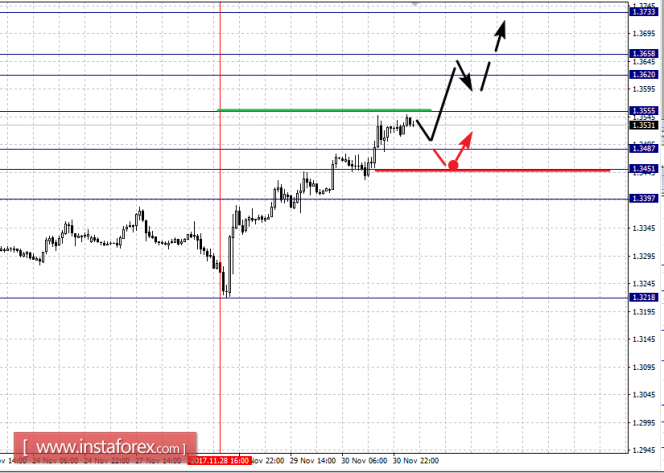 Фрактальный анализ по основным валютным парам на 1 декабряИнстаФорекс - Instaforex, 8 лет назад Здравствуйте, уважаемые коллеги. По паре Евро/Доллар цена оформила локальную структуру для продолжения восходящего движения от 30 ноября. По паре Фунт/Доллар мы расширили потенциал для восходящей структуры от 28 ноября до уровня 1.3733. По паре Доллар/Франк цена находится в коррекции, продолжение движения книзу возможно после пробоя 0.9800. По паре Доллар/Иена продолжения развития восходящей тенденции ожидаем после пробоя 112.70. По паре Евро/Иена продолжения движения кверху ожидаем после пробоя 134.05. По паре Фунт/Иена следим за восходящей структурой от 28 ноября, потенциал для верха находится на отметке – 153.98. Прогноз на 1 декабря: Аналитический обзор валютных пар в масштабе Н1:
