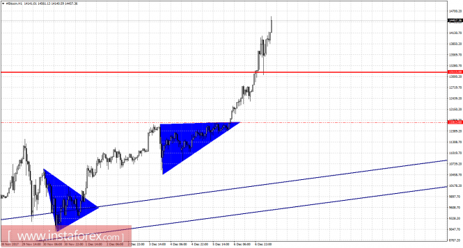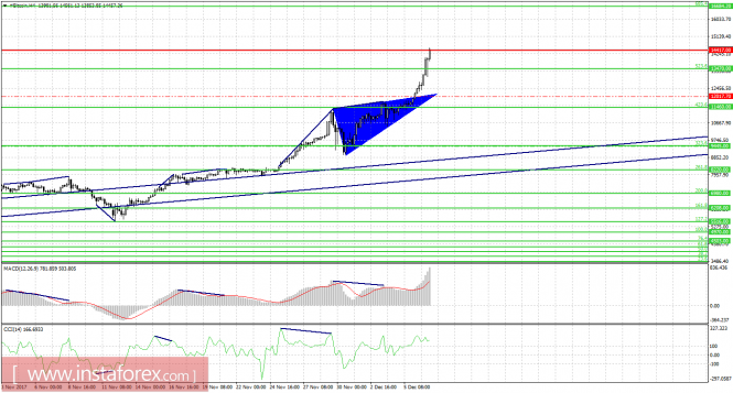 Графический анализ #Bitcoin на 7 декабряИнстаФорекс - Instaforex, 7 лет назад Без особых усилий биткоин превысил отметку 14000$, хотя еще вчера торговался по 12500$ за монету. Какой-либо причины столь быстрого и стремительного роста «битка» нет и быть не может. Просто, как и ранее, продолжает расти спрос на криптовалюту номер 1, а вместе со спросом растут и цены. Так как биткоин не привязан к реальным активам, то и средневзвешенной ценой он также не обладает. Таким образом, теоретически он может вырасти и до 100 000$. Пока спрос будет увеличиваться, будет расти и «биток». Тем временем вместе с курсом биткоина растут и комиссии на его использование, и многим компаниям, которые принимали расчет в «битках», становится уже невыгодно его использовать, так как, во-первых, слишком быстро меняется курс, во-вторых, комиссии за транзакции иногда превышают стоимость товара, за который идет оплата. Bitcoin закрылся над уровнем коррекции 523,6% - 13470,00$. Также цель, полученная от треугольника, 14417,00$, также отработана. Ни одного намека на поход вниз. Котировки продолжают расти в направлении коррекционного уровня 685,4% - 16684,00$. На часовом графике цель треугольника 13113,00$ с легкостью достигнута. Новых графических паттернов сейчас нет. Торговые рекомендации: Покупки #Bitcoin можно рассматривать с целью 16684,00$ и с ордером, ограничивающим убытки, ниже уровня 523,6%. Любой сигнал к продажам можно трактовать как сигнал к закрытию покупок. Продавать #Bitcoin сейчас рекомендуется весьма осторожно, если будет выполнен отбой от уровня коррекции 685,4%. Заработайте на движениях курса криптовалют с ИнстаФорекс, открыв сделку в терминале MetaTrader4. Материал предоставлен компанией InstaForex - www.instaforex.com |