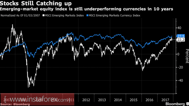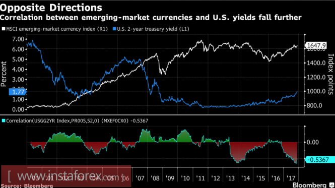 Рублю не дает покоя американский долгИнстаФорекс - Instaforex, 7 лет назад Российский рубль упал к двухнедельному минимуму против доллара США в преддверии публикации важной статистики по американскому рынку труда за ноябрь. Формально ключевыми факторами ралли USD/RUB стало увеличение объемов покупок иностранной валюты Минфином РФ с 5,8 млрд до 12,7 млрд руб. ($214 млн) в сутки, однако на самом деле причины нужно искать глубже. Во-первых, несмотря на пребывание S&P500 вблизи исторических максимумов, акции эмитентов технологического сектора идут вниз, на что чутко реагирует MSCI EM. Во-вторых, после пролонгации соглашения ОПЕК о сокращении добычи нефти рынок сырья вошел в закономерную коррекцию на фоне фиксации прибыли по длинным позициям спекулянтами. В целом за последний месяц Bloomberg Commodities Index потерял около 4,6%. Рубль чутко реагирует на общие тенденции рынка валют развивающихся стран. Тот факт, что после оттока капитала в 2015-2016 в размере $620 млрд и $550 млрд приток в ориентированные на EM фонды в текущем году составил $115 млрд, позволяет объяснить его крепкие позиции. Однако ситуация на рынке ежедневно меняется, и судьба USD/RUB зависит от интереса нерезидентов к рублевым активам. По мнению Goldman Sachs, низкие ставки глобального долгового рынка, не угрожающая агрессивной монетарной рестрикцией ФРС инфляция и стабильно высокий рост ВВП позволяют прогнозировать продолжение ралли мировых фондовых индексов. При этом банк отдает предпочтение развивающимся странам над развитыми. Следует отметить, что в последние годы эффективность вложений в MSCI EM превосходила отдачу от их валют. Это обусловлено повышенной чувствительностью денежных единиц развивающихся стран к ставкам долгового рынка США. Корреляция между этими показателями к концу года выросла до -0,67. Динамика MSCI EM и MSCI валют EM Источник: Bloomberg. Динамика MSCI валют EM и доходности облигаций США Источник: Bloomberg. Таким образом, основным риском для рубля в 2018 станет ускорение американской инфляции. Несмотря на то что технологические, демографические факторы и глобализация до сих пор очень неплохо сдерживали ее рост, падение безработицы ниже 4% и реализация кривой Филлипса будут способствовать разгону PCE и CPI. Особенно в условиях стабильного роста ВВП на 3% и выше и воплощения в жизнь налоговой реформы. В итоге ФРС будет вынуждена более агрессивно повышать ставку по федеральным фондам, чем в настоящее время предполагают инвесторы. Это обернется взлетом доходности американских облигаций, увеличением стоимости фондирования и выходом carry-трейдеров из рискованных активов. Впрочем, если американская инфляция по-прежнему будет расти медленно, а S&P500 не устанет штурмовать исторические максимумы, то рубль получит шанс вернуться в игру. Технически для продолжения ралли в направлении таргета на 127,2% по паттерну AB=CD «быкам» необходимо взять штурмом сопротивление на 59,7, а затем обновить ноябрьский максимум. Напротив, выход котировок за пределы восходящего торгового канала усилит риски реализации таргета на 127,2% по паттерну «Идеальная бабочка». USD/RUB, дневной график Материал предоставлен компанией InstaForex - www.instaforex.com |