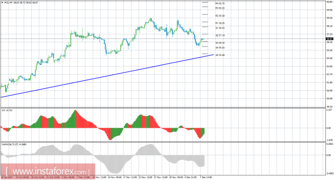 Технический анализ сырой нефти за 8 декабря 2017 годаИнстаФорекс - Instaforex, 8 лет назад 4-часовой таймфрейм Анализ: Котировки «черного золота» в четверг, 7 декабря, ближе к вечеру попытались возобновить восходящее движение, оба индикатора развернулись наверх. Восходящая линия тренда продолжает поддерживать торгующих на повышение и делать актуальными лонги. Целями для движения вверх на данный момент выступают уровни 57,19 и 58,03. Если цена закрепиться ниже линии тренда, то тенденция на рынке измениться на нисходящую и станут актуальными ордера на продажу. Торговые рекомендации: В ходе проведенного анализа движения цены на нефть можно сделать вывод, что сейчас можно рассматривать ордера на покупку с целями 57,19 и 58,03. Стоп-лосс выставляем ниже ближайшего уровня поддержки. При заходе сделки в прибыльность 80-130 пунктов, рекомендуется переносить открытую сделку в безубыток. Разворот вниз одного или обоих индикаторов может указать на новый виток коррекции, как и отскок от уровня 57,19. На пятницу запланирован отчет Baker Hughes об изменении количества действующих буровых платформ(18-00 GMT). Короткие позиции сейчас по-прежнему не актуальны. Помимо технической картины следует также учитывать фундаментальные данные и время их выхода. Пояснения к иллюстрациям: Awesome Oscillator – красные и зеленые бары в окне индикаторов. OsMA – серые бары в окне индикаторов. Линии тренда – синие линии. Уровни поддержки и сопротивления – красные горизонтальные линии.Материал предоставлен компанией InstaForex - www.instaforex.com |