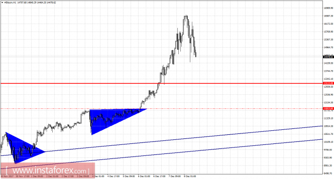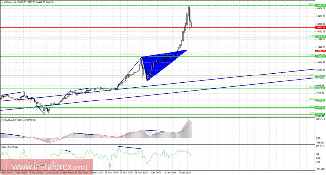 Графический анализ #Bitcoin на 8 декабряИнстаФорекс - Instaforex, 7 лет назад Котировки биткоина так же без каких-либо усилий, как и днем ранее, достигли отметку 16 600 долларов за монету. После чего начался очередной обвал котировок. Наиболее объективной причиной начавшегося падения можно назвать фиксацию прибыли большим количеством инвесторов. Таким образом, котировки сейчас вполне могут просесть и до 12-13 тысяч за монету, после чего не исключено, что начнется новый рост криптовалюты номер один в мире. Saxobank тем временем дал свой прогноз относительно биткоина на 2018 год. По мнению крупного банка, биткоин вполне может вырасти до 60 000$, однако потом его неминуемо ждет крах. Котировки упадут до 1 000$. Именно эта цифра, по мнению аналитиков Saxobank, является реальной стоимостью «битка». Ассоциация фьючерсной торговли США обеспокоена запуском деривативов по биткоину. По их мнению, это приведет к резким скачкам и без того нестабильного курса. Bitcoin вырос почти к уровню коррекции 685,4% - 16 684,00$. После чего последовал разворот и началось падение котировок «битка», которое суммарно может составлять 20-30%. Таким образом, сейчас возможно падение, как минимум к уровню Фибо 523,6% - 13 470,00$. На часовом графике новых графических паттернов нет. Торговые рекомендации: Покупки #Bitcoin можно будет рассматривать с целью 16 684,00$ и с ордером, ограничивающим убытки, ниже уровня 523,6% при уверенном отбое от уровня Фибо 523,6%. Продавать #Bitcoin сейчас рекомендуется весьма осторожно, однако отбоя как такового от уровня коррекции 685,4% не было. Заработайте на движениях курса криптовалют с ИнстаФорекс, открыв сделку в терминале MetaTrader4. |