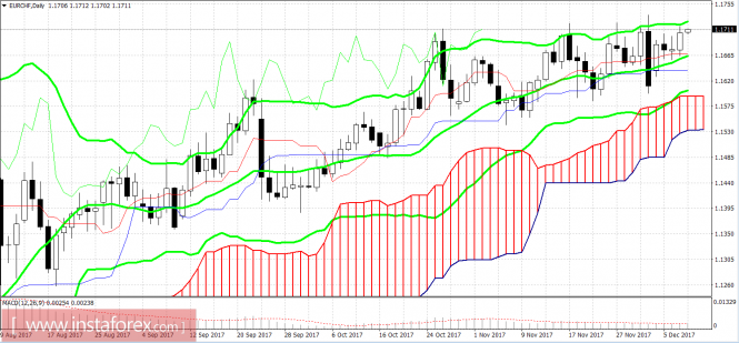 EUR/CHF: торгуем в диапазонеИнстаФорекс - Instaforex, 7 лет назад Кросс-пара евро/франк характеризуется своей флегматичностью: здесь достаточно редко можно увидеть всплески сильной волатильности или импульсного роста. После исторического обвала в январе 2015 года, пара ведёт себя достаточно спокойно по сравнению с другими валютными парами. Тем не менее ценовое движение eurchf отнюдь не хаотично. На месячном таймфрейме мы видим отчётливый северный тренд, который сформировался после достижения двухлетнего минимума в области шестой фигуры. За прошедшие 11 месяцев пара прошла вверх более тысячи пунктов: планомерно и уверенно. Импульсный ценовой прорыв был зафиксирован лишь в июле этого года, когда кросс вырос за несколько недель с 1.09 до 1.14. Такая нетипичная динамика объяснялась несколькими факторами. Это и переизбыток в системе франков, и реализация доли Toshiba в швейцарской компании Landis+Gyr Group AG, и приобретение евро японскими банками, а также действия ШНБ. Совокупность фундаментальных факторов привела к наиболее резкому за 2 года скачку цены. Впрочем, коррекционного отката затем практически не последовало. После флетового августа кросс-пара вновь взяла курс на север. В целом поведение пары eurchf мне сейчас напоминает пару audusd 2-3-летней давности. В тот период австралиец занимал определённую ценовую нишу и в течение нескольких недель торговался в диапазоне, отталкиваясь от границ ценового канала. Затем «оззи» переходил на следующую ступень, в рамках общего тренда. Такая динамика позволяла на протяжении года достаточно стабильно торговать данным инструментом. С конца октября пара евро/франк также находится в ценовом диапазоне, который постепенно сужается. За полтора месяца кросс более пяти раз пытался пробить и закрепиться выше отметки 1.1720, где расположен уровень сопротивления в виде верхней линии индикатора Bollinger Bands на дневном графике. Нижняя граница в ноябре располагалась в области 15-й фигуры, однако в последнее время ценовой канал несколько сузился, и поддержка располагается в области 1.1640-60. Необходимо заметить, что, несмотря на существенную девальвацию франка за прошедший год, швейцарский регулятор всё равно считает его переоценённым. Глава ШНБ Томас Йордан на недавней встрече с членами правительства подчеркнул, что отрицательная ставка всё ещё актуальна и поэтому будет действовать на протяжении длительного времени. Также Центробанк продолжит проводить валютные интервенции, сохраняя сверхмягкую монетарную политику. При этом внутренняя макроэкономическая статистика Швейцарии фактически игнорируется рынком. К примеру, в начале декабря стало известно, что экономика страны по итогам третьего квартала выросла на 0,6% относительно предыдущего отчётного периода. Это максимальный темп роста за последние три года. В свою очередь швейцарский индекс потребительских цен в годовом выражении также вырос, достигнув 0,8%. Но все эти цифры были восприняты трейдерами как «новостной шум»: кросс-пара продолжила следовать заданному тренду. Другими словами, франк продолжает ориентироваться на котируемые валюты. В паре usdchf цена реагирует на американские события, соответственно в кросс-паре eurchf – на европейские. Таким образом, наиболее ожидаемое трейдерами этой пары событие декабря – заседание ЕЦБ, которое состоится уже на следующей неделе, 14 дек