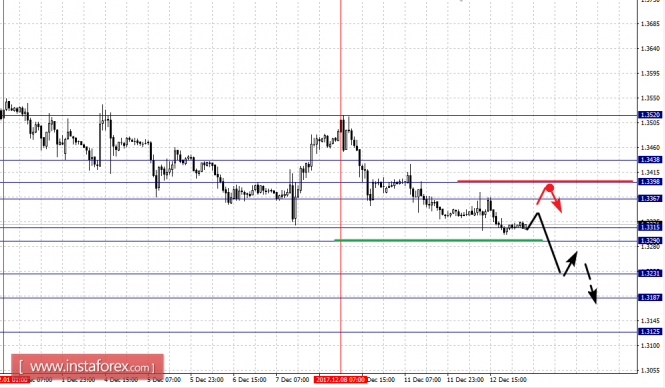 По паре Фунт/Доллар ключевыми уровнями в масштабе Н1 являются: 1.3438, 1.3398, 1.3367, 1.3315, 1.3290, 1.3231, 1.3187 и 1.3125. Здесь мы следим за локальной нисходящей структурой от 8 декабря. Продолжения движения книзу ожидаем после прохода ценой шумового диапазона 1.3315 – 1.3290, в данном случае цель – 1.3231, пробой которой позволит рассчитывать на движение к уровню 1.3187, возле этого значения ожидаем консолидацию. Потенциальным значением для низа считаем уровень 1.3125, по достижении которого ожидаем откат кверху. Краткосрочное восходящее движение возможно в коридоре 1.3367 – 1.3398, пробой последнего значения приведет к углубленной коррекции, здесь цель – 1.3438, этот уровень является ключевой поддержкой для нисходящей структуры от 8 декабря. Основная тенденция – локальная нисходящая структура от 8 декабря. Торговые рекомендации: Buy: 1.3368 Take profit: 1.3396 Buy: 1.3400 Take profit: 1.3435 Sell: 1.3290 Take profit: 1.3235 Sell: 1.3228 Take profit: 1.3190 По паре Доллар/Франк ключевыми уровнями в масштабе Н1 являются: 1.0034, 1.0011, 0.9970, 0.9937, 0.9917, 0.9891 и 0.9854. Здесь мы следим за восходящим циклом от 1 декабря, на текущий момент цена находится в коррекции. Продолжения развития восходящего цикла от 1 декабря ожидаем после пробоя 0.9970, в данном случае цель – 1.0011. Потенциальным значением для верха считаем уровень 1.0034, по достижении которого ожидаем консолидированное движение в коридоре 1.0011 – 1.0034. Краткосрочное нисходящее движение возможно в коридоре 0.9937 – 0.9917, пробой последнего значения приведет к углубленной коррекции, здесь цель – 0.9891, этот уровень является ключевой поддержкой для верха. Основная тенденция – восходящая структура от 1 декабря, стадия коррекции. Торговые рекомендации: Buy: 0.9972 Take profit: 1.0010 Buy: 1.0012 Take profit: 1.0032 Sell: 0.9935 Take profit: 0.9918 Sell: 0.9915 Take profit: 0.9895