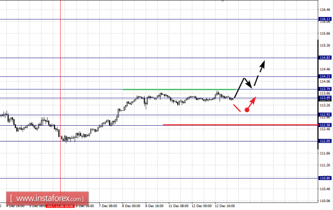 Фрактальный анализ по основным валютным парам на 13 декабряИнстаФорекс - Instaforex, 7 лет назад Здравствуйте, уважаемые коллеги. По паре Евро/Доллар продолжения движения книзу ожидаем после пробоя 1.1723. По паре Фунт/Доллар продолжения движения книзу ожидаем после прохода ценой шумового диапазона 1.3315 – 1.3290. По паре Доллар/Франк цена находится близко к ключевой поддержке для верха – 0.9891, уровень 0.9970 является ключевым сопротивлением. По паре Доллар/Иена продолжения движения кверху ожидаем после прохода ценой шумового диапазона 113.49 – 113.79. По паре Евро/Иена продолжения движения кверху ожидаем после пробоя 134.05. По паре Фунт/Иена цена находится в области ключевой поддержки для восходящей структуры от 6 декабря 151.66 – 150.88. Прогноз на 13 декабря: Аналитический обзор валютных пар в масштабе Н1: