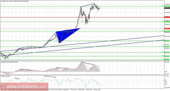 Графический анализ #Bitcoin на 14 декабряИнстаФорекс - Instaforex, 7 лет назад Очередное интересное мнение относительно биткоина появилось в сети. На этот раз высказался владелец баскетбольного клуба «Голден Стейт Уорриорс» и основатель венчурной фирмы Social Capital Partnership Чамат Палихапития. По его мнению, через 3-4 года биткоин будет стоить не менее 20 000$, а через 20 лет – миллион. Ранее Чамат Палихапития заявлял, что биткоин – это лучшее средство против валютных ограничений и автократии. Также он признался, что изначально владел около 5% всех выпущенных монет биткоина, однако позже часть продал. Тем временем «биток» остается около своих абсолютных максимумов, и отсутствие падения его котировок говорит только об одном – желающих продавать сейчас нет, но и желающих покупать биткоин на текущих уровнях – немного. Bitcoin вырос к уровню коррекции 685,4% – 16684,00$, однако медвежья дивергенция у индикатора MACD позволила «битку» начать слабое падение. На данный момент рост котировок прекращен. На часовом графике построен новый сужающийся треугольник, который уже имеет все необходимые точки. Теперь мы ждем прохода одной из его сторон для определения дальнейшей тенденции. Торговые рекомендации: Новые покупки #Bitcoin можно рассматривать над уровнем коррекции 685,4%, однако теперь для этого нужна отмена дивергенции или новый сигнал к покупкам, например, по треугольнику на часовом графике. Продавать #Bitcoin рекомендуется крайне осторожно, если случится уверенный проход нижней границы треугольника. Заработайте на движениях курса криптовалют с ИнстаФорекс, открыв сделку в терминале MetaTrader4. |