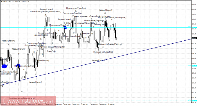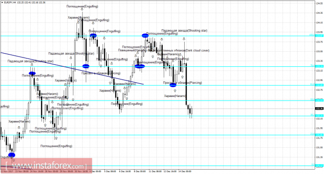 Свечной анализ EUR/JPY на 15 декабряИнстаФорекс - Instaforex, 7 лет назад 4h После образования новой медвежьей формации «Падающая звезда», пара EUR/JPY на 4-часовом графике выполнила разворот в пользу валюты Японии и падение к уровню коррекции 38,2% - 132,21. Отбой котировок от уровня Фибо 38,2% позволит трейдерам ожидать разворот в пользу европейской валюты и некоторый рост в направлении уровня коррекции 50,0% - 132,53. Образование бычьей свечной формации аналогично сработает в пользу начала роста пары. Закрепление котировок под уровнем Фибо 38,2% повысит шансы на дальнейшее падение в направлении следующего уровня коррекции 23,6% - 131,81. Сетка Фибо построена по экстремумам от 15 ноября 2017 года и 20 ноября 2017 года. Daily На 24-часовом графике медвежья свечная формация «Падающая звезда» позволила котировкам выполнить разворот в пользу японской иены и закрепление под уровнем коррекции 200,0% - 133,32. В итоге падение пары продолжается в направлении следующего коррекционного уровня 161,8% - 129,81. Образование бычьей свечной формации будет трактоваться как трендовый сигнал, и позволит рассчитывать на разворот в пользу европейской валюты и возобновление процесса роста в направлении области 134,50. Сетка Фибо построена по экстремумам от 15 декабря 2016 года и 17 апреля 2017 года. Материал предоставлен компанией InstaForex - www.instaforex.com |