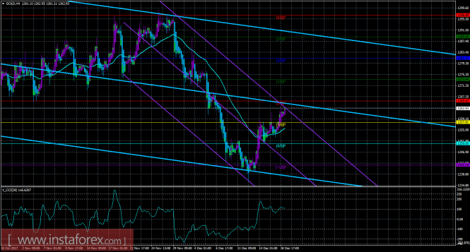 Техническая картина инструмента GOLD по системе «Каналы регрессии» за 19 декабря 2017 годаИнстаФорекс - Instaforex, 8 лет назад 4-часовой таймфрейм Технические данные: Старший канал линейной регрессии: направление – вниз. Младший канал линейной регрессии: направление – вниз. Скользящая средняя (20; сглаженная) – вверх. CCI: 116.6207 Пояснения: Техническая картина золота 19 декабря показывает, что цена продолжает несильное движение вверх, о чем сигнализирует индикатор Хайкен Аши. Старший канал направлен вниз, что свидетельствует о нисходящей тенденции в долгосрочном плане. Младший канал также направлен вниз, что означает нисходящую тенденцию и в среднесрочном плане. Сейчас цена находится выше скользящей средней и выше уровня Мюррея «1/8», что прогнозирует восходящее направление движения в ближайшее время. Первой целью для движения вверх, таким образом, является уровень Мюррея «2/8» - 1265,63. Если этот таргет будет преодолен, то новой целью для движения станет уровень Мюррея «3/8» - 1273,44. Скользящая средняя направлена вверх, а цена располагается выше нее, поэтому сейчас более вероятно восходящее движение. Хайкен Аши окрасил последние бары в фиолетовый цвет, что указывает на локальное движение вверх, разворот индикатора вниз укажет на виток коррекционного движения, однако лонги сейчас не доступны для рассмотрения при любой направленности индикатора. Ордера на покупку можно будет рассматривать не ранее разворота наверх любого канала. Короткие позиции станут актуальными только ниже мувинга. Индикатор CCI находится около уровня 100, что сигнализирует о наличие слабой перекупленности инструмента. Ближайшие уровни поддержки: S1 – 1257,81 S2 – 1250,00 S3 – 1242,19 Ближайшие уровни сопротивления: R1 – 1265,63 R2 – 1273,44 R3 – 1281,25 Торговые рекомендации: Исходя из анализа движения курса золота, можно сделать вывод, что сейчас не рекомендуется рассматривать любые позиции по инструменту, так как оба канала линейной регрессии направлены вниз, а цена располагается выше мувинга. Помимо технической картины следует также учитывать фундаментальные данные и время их выхода. Пояснения к иллюстрациям: Старший канал линейной регрессии – голубые линии однонаправленного движения. Младший канал линейной регрессии – фиолетовые линии однонаправленного движения. CCI – голубая линия в окне индикатора. Скользящая средняя (20;сглаженная) – голубая линия на графике цены. Уровни Мюррея – разноцветные горизонтальные полосы. Хайкен Аши – индикатор, окрашивающий бары в голубой или фиолетовый цвета.Материал предоставлен компанией InstaForex - www.instaforex.com |