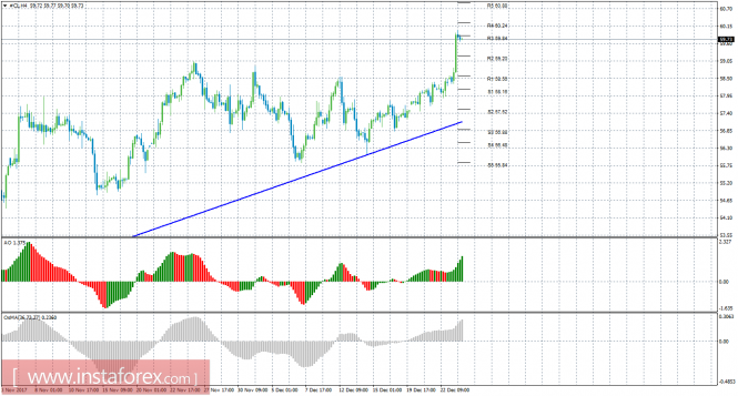 Технический анализ сырой нефти за 27 декабря 2017 годаИнстаФорекс - Instaforex, 7 лет назад 4-часовой таймфрейм Анализ: Котировки «черного золота», в отличие от многих валютных пар, продолжают стабильное, и даже усилившееся, восходящее движение, а восходящая линия тренда по-прежнему поддерживает торгующих на повышение и делает актуальными длинные позиции. Цена отработала уровень сопротивления R3 и не смогла его преодолеть. Таким образом, сейчас возможно начало нисходящей коррекции с целями уровни 59,20 и 58,56. Если цена закрепиться выше уровня R3, то движение сможет продолжиться. Сегодня внимание трейдеров привлечет очередной отчет Американского института нефти. Торговые рекомендации: В ходе проведенного анализа движения цены на нефть, можно сделать вывод, что сейчас можно рассматривать ордера на покупку с целями 60,24 и 60,88. Стоп-лосс выставляем ниже ближайшего уровня поддержки. При заходе сделки в прибыльность 80-130 пунктов, рекомендуется переносить открытую сделку в безубыток. Преодоление уровня 59,84 укажет на продолжение движения вверх. На среду запланирован отчет Американского нефтяного института по изменению объемов запасов нефти за прошедшую неделю (21-30 GMT). Короткие позиции сейчас по-прежнему не актуальны. Помимо технической картины следует также учитывать фундаментальные данные и время их выхода. Пояснения к иллюстрациям: Awesome Oscillator – красные и зеленые бары в окне индикаторов. OsMA – серые бары в окне индикаторов. Линии тренда – синие линии. Уровни поддержки и сопротивления – красные горизонтальные линии.Материал предоставлен компанией InstaForex - www.instaforex.com |