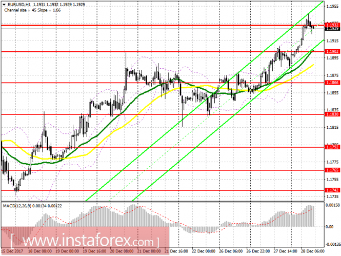 Торговый план на американскую сессию 28 декабря EUR/USD и GBP/USDИнстаФорекс - Instaforex, 7 лет назад EUR/USD Для открытия длинных позиций по EURUSD требуется: Покупатели не сумели зацепиться за 1.1932, и в настоящий момент рассматривать новые длинные позиции рекомендую только после повторного роста выше этого диапазона, с основной ключевой целью обновления 1.1966, где рекомендую фиксировать прибыль. В случае дальнейшего снижения евро покупать на отскок можно в районе 1.1902. Для открытия коротких позиций по EURUSD требуется: Ложный пробой и возврат под 1.1932 ограничил восходящий потенциал в евро, однако и более крупной распродажи после этого не последовало. Пока торговля ведется ниже этого уровня, можно ожидать дальнейшего падения EURUSD в район 1.1902 с ключевой целью 1.1866, где рекомендую фиксировать прибыль. GBP/USD Для открытия длинных позиций по GBPUSD требуется: Возвращаться в длинные позиции по фунту можно только после пробоя и закрепления выше уровня 1.3452, который открывает прямую дорогу на недельные максимумы в области 1.3477 и 1.3514, где рекомендую фиксировать прибыль. В случае снижения фунта во второй половине дня, рассматривать новые покупки можно на отскок от 1.3422 либо после обновления более крупной поддержки 1.3400. Для открытия коротких позиций по GBPUSD требуется: Пока торговля ведется ниже 1.3452, можно ожидать дальнейшего снижения GBP/USD с возвратом на 1.3422 и обновлением 1.3400, где рекомендую фиксировать прибыль. В случае роста выше 1.3452, рассматривать новые короткие позиции можно сразу на отскок от 1.3514. Опасения индикаторов