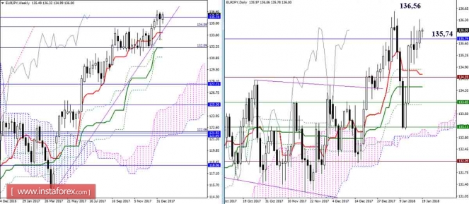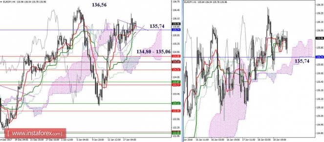 Дневной обзор GBP/JPY и EUR/JPY на 19.01.18. Индикатор ИшимокуИнстаФорекс - Instaforex, 7 лет назад GBP/JPY Вчера игроки на повышение продолжили подъём – обозначили новый максимум и смогли закрыть день выше экстремума предыдущих суток. Сегодня закрываем неделю. Для сохранения перспектив быкам желательно сформировать минимальную верхнюю тень. В этом случае можно будет ожидать дальнейшего восхождения к месячным сопротивлениям (Киджун 155,56 + Сенкоу Спан Б 156,32). Если же сегодня будут доминировать медвежьи настроения, верхняя тень недельной свечи получится длинной, а день закроется с образованием разворотной свечной модели, то пару ждёт новая нисходящая коррекция. Надёжно закрепиться выше отработанной цели на пробой облака Н4 пока не получается, поэтому особое внимание сегодня принадлежит поддержкам. Уровни поддержки сейчас можно отметить на 154,03 (Тенкан Н4 + крест Н1 + 100% цели Н4) – 153,65-55 (Фибо Киджун Н4 + верх облака Н1 + исторический уровень) – 153,23 (Киджун Н4 + нижняя граница облака Н1). Снижение под данные поддержки изменит существующий баланс сил и потребует новой оценки ситуации. EUR/JPY Вчера игроки на повышение сумели закрыть сутки выше ключевого сопротивления месячного Сенкоу Спан А (135,74), но сделали это не совсем убедительно. В результате нужно подтверждение. Повышательным ориентиром сейчас остаётся обновление максимального экстремума (136,56). Ближайшей поддержкой на более младших таймах сегодня выступает 135,74. Пара продолжает борьбу с месячным уровнем 135,74. К настоящему моменту данный уровень удалось превратить в поддержку, достаточно важную для младших таймов, так как она сейчас усиливает крест Н4 и облако Н1. Пробой изменит сложившийся баланс сил и сформирует новую понижательную цель (цель на пробой облака Н1). Ориентирами для снижения в этом случае будет служить облако Н4 и уровни дневного креста. Если паре сейчас удастся сохранить своё расположение выше 135,74 и развить преимущество, то ближайший повышательный ориентир максимум 136,56, а далее интерес будет представлять действующая цель на пробой облака Н4. Параметры индикатора: все временные интервалы 9 – 26 – 52 Цвет линий индикатора: Тенкан (краткосрочный тренд) – красный, Киджун (среднесрочный тренд) – зелёный, Фибо Киджун – зеленый пунктир, Чинкоу – серый, облака : Сенкоу Спан Б (SSB, долгосрочный тренд) – синий, Сенкоу Спан А (SSA) – розовый. Цвет дополнительных линий: поддержки и сопротивления MN – синий, W1 – зелёный, D1 – красный, Н4 – розовый, Н1 – серый, горизонтальные уровни (не Ишимоку) – коричневый, трендовые линии – фиолетовый. Материал предоставлен компанией InstaForex - www.instaforex.com |