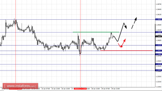 По паре Евро/Доллар ключевыми уровнями в масштабе Н1 являются: 1.2411, 1.2359, 1.2336, 1.2294, 1.2264, 1.2169 и 1.2098. Здесь мы продолжаем следить за восходящей структурой от 9 января, на текущий момент цена находится в коррекции. Пробой уровня 1.2169 приведет к развитию углубленного корректировочного движения, здесь цель – 1.2098, до этого уровня мы ожидаем оформления выраженных начальных условий для нисходящего цикла. Продолжения движения кверху ожидаем после прохода ценой шумового диапазона 1.2264 – 1.2294, в данном случае первая цель – 1.2336, в коридоре 1.2336 – 1.2359 консолидация. Потенциальным значением для верха считаем уровень 1.2411, по достижении которого ожидаем откат книзу. Основная тенденция – восходящая структура от 9 января, стадия коррекции. Торговые рекомендации: Buy: 1.2296 Take profit: 1.2334 Buy 1.2360 Take profit: 1.2410 Sell: 1.2167 Take profit: 1.2110 Sell: Take profit: