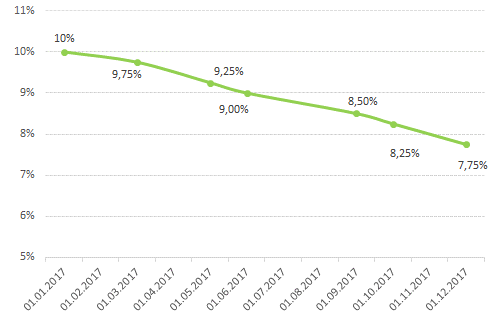 Источник: Росстат График 2. Динамика ключевой процентной ставки в РФ в 2017 г., %