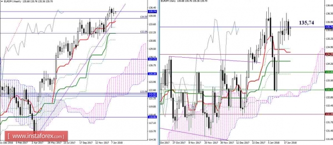 Дневной обзор GBP/JPY и EUR/JPY на 22.01.18. Индикатор ИшимокуИнстаФорекс - Instaforex, 7 лет назад GBP/JPY Игроки на повышение в пятницу не смогли удержать высоту, позволяющую закрыть неделю максимально оптимистично. Сегодня, с помощью небольшого восходящего гэпа при открытии, они пытаются исправить ситуацию, но предпосылки для коррекции всё же уже сформированы. Удалённость от уровней дневного креста (Тенкан 152,36 + Киджун 151,97), которые в настоящий момент находятся в горизонтальном положении, также усиливает сейчас шансы коррекционного снижения. В пятницу пара достаточно легко спустилась к заключительной обозначенной поддержке (153,23). Данный уровень способствует сохранению интересов игроков на повышение на младших таймфреймах. Преодоление поддержки креста Н4 и облака Н1 изменит баланс сил в пользу медведей, сформирует понижательную цель и откроет дорогу для снижения к поддержкам дневного креста. Сопротивлениями и ориентирами для игроков на повышение сегодня являются уровни 154,10 (Сенкоу Спан А Н1 + цель Н4) и 154,55 (максимальный экстремум). EUR/JPY Неопределённость и консолидация сохраняются. Подтвердить пробой и закрепиться выше месячного Сенкоу Спан А (135,74) игрокам на повышение в пятницу не удалось. Сегодня, несмотря на восходящий геп, уровень 135,74 вновь в роли сопротивления. Роль ближайших поддержек по прежнему принадлежит дневному кресту (134,70-80 – 134,31), уровни сохраняют горизонтальное положение, что говорит о слабости игроков на повышение. На младших таймах игроки на понижение завладели начальным преимуществом. Важное сопротивление (крест Н4 + облако Н1), позволяющее вернуть соперникам свои интересы, сейчас усилено месячным Сенкоу Спан А 135,74. Ориентиром для снижения является облако Н4. Надёжный пробой облака Н4 в сложившейся ситуации совпадает с пробоем дневного креста, именно пробой данных рубежей позволит рассмотреть новые перспективы для медведей. Параметры индикатора: все временные интервалы 9 – 26 – 52 Цвет линий индикатора: Тенкан (краткосрочный тренд) – красный, Киджун (среднесрочный тренд) – зелёный, Фибо Киджун – зеленый пунктир, Чинкоу – серый, облака : Сенкоу Спан Б (SSB, долгосрочный тренд) – синий, Сенкоу Спан А (SSA) – розовый. Цвет дополнительных линий: поддержки и сопротивления MN – синий, W1 – зелёный, D1 – красный, Н4 – розовый, Н1 – серый, горизонтальные уровни (не Ишимоку) – коричневый, трендовые линии – фиолетовый. Материал предоставлен компанией InstaForex - www.instaforex.com |