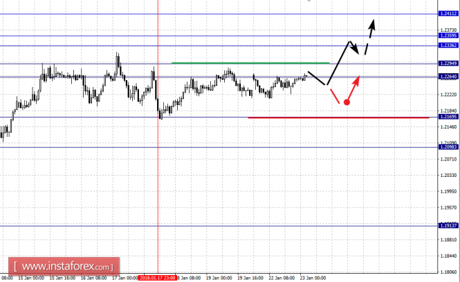 Фрактальный анализ по основным валютным парам на 23 январяИнстаФорекс - Instaforex, 7 лет назад Здравствуйте, уважаемые коллеги. По паре Евро/Доллар следим за локальной структурой для верха от 17 января, продолжения движения кверху ожидаем после пробоя 1.2296. По паре Фунт/Доллар мы расширили потенциал для верха до уровня 1.4236. По паре Доллар/Франк цена формирует потенциал для вера от 19 января в коррекции от нисходящей структуры. По паре Доллар/Иена цена пока находится в коррекции от нисходящей структуры, уровень 111.96 является ключевой поддержкой. По паре Евро/Иена продолжения движения кверху ожидаем после прохода ценой шумового диапазона 136.16 – 136.46. По паре Фунт/Иена продолжения движения кверху ожидаем после пробоя 155.35. Прогноз на 23 января: Аналитический обзор валютных пар в масштабе Н1: