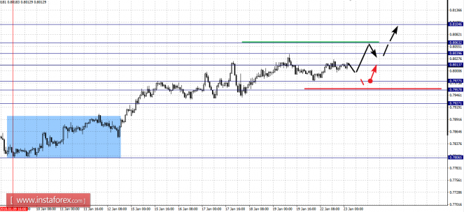 По паре Доллар/Иена ключевыми уровнями в масштабе являются: 111.96, 111.56, 111.27, 110.22, 109.86, 109.63 и 109.07. Здесь мы продолжаем следить за нисходящей структурой от 8 января, на текущий момент цена находится в коррекции. Продолжения движения книзу ожидаем после пробоя 110.20, в данном случае цель – 109.86, в коридоре 109.86 – 109.63 консолидация. Потенциальным значением для низа считаем уровень 109.07, движение к которому ожидаем после пробоя 109.60. Краткосрочное восходящее движение возможно в коридоре 111.27 – 111.56, пробой последнего значения приведет к углубленной коррекции, здесь цель – 111.96, этот уровень является ключевой поддержкой для нисходящей структуры, до него мы ожидаем оформления начальных условий для верха. Основная тенденция: нисходящий цикл от 8 января, стадия коррекции. Торговые рекомендации: Buy: 111.29 Take profit: 111.55 Buy: 111.58 Take profit: 111.94 Sell: 110.20 Take profit: 109.88 Sell: 109.60 Take profit: 109.10 По паре Канадский доллар/Доллар ключевыми уровнями в масштабе Н1 являются: 1.2582, 1.2508, 1.2432, 1.2401, 1.2380, 1.2323 и 1.2287. Здесь ситуация находится в равновесном состоянии. Продолжения движения книзу ожидаем после пробоя 1.2432, в данном случае первая цель – 1.2401. Краткосрочное движение книзу ожидаем в коридоре 1.2401 – 1.2380, пробой последнего значения должен сопровождаться выраженным движением к уровню 1.2323. Потенциальным значением для низа считаем уровень 1.2287, по достижении которого ожидаем уход в коррекцию. Развития восходящей структуры от 17 января ожидаем после пробоя 1.2510, в данном случае потенциальная цель – 1.2582. Основная тенденция – равновесная ситуация. Торговые рекомендации: Buy: 1.2510 Take profit: 1.2580 Buy: Take profit: Sell: 1.2430 Take profit: 1.2401 Sell: 1.2380 Take profit: 1.2325 По паре Австралийский доллар/Доллар ключевыми уровнями в масштабе Н1 являются: 0.8104, 0.8063, 0.8039, 0.8013, 0.7977, 0.7957 и 0.7927. Здесь мы продолжаем следить за восходящей структурой от 9 января. Продолжения движения кверху ожидаем после пробоя 0.8013, в данном случае цель – 0.8039, в коридоре 0.8039 – 0.8062 консолидация цены. Потенциальным значением для верха считаем уровень 0.8104, по достижении которого ожидаем консолидацию, а также откат книзу. Краткосрочное нисходящее движение возможно в коридоре 0.7977 – 0.7957, пробой последнего значения приведет к углубленной коррекции, здесь цель – 0.7927, этот уровень является ключевой поддержкой для верха. Основная тенденция – восходящая структура от 9 января. Торговые рекомендации: Buy: 0.8015 Take profit: 0.8039 Buy: 0.8042 Take profit: 0.8062 Sell: 0.7977 Take profit: 0.7958 Sell: 0.7955 Take profit: 0.7930 По паре Евро/Иена ключевыми уровнями в масштабе Н1 являются: 137.47, 137.06, 136.46, 136.16, 135.35, 135.03, 134.62 и 134.04. Здесь мы продолжаем следить за восходящей структурой от 10 января. Продолжения движения кверху ожидаем после прохода ценой шумового диапазона 136.161 136.46, в данном случае цель – 137.06. Потенциальным значением для верха считаем уровень 137.47, по достижении которого ожидаем консолидацию, а также откат книзу. Краткосрочное нисходящее движение возможно в коридоре 135.35 – 135.03, пробой последнего значения приведет к углубленной коррекции, здесь цель – 134.62, этот уровень является ключевой поддержкой для верха, его проход ценой будет располагать к формированию нисходящей структуры, в данном случае цель – 134.04. Основная тенденция – восходящая структура от 10 января. Торговые рекомендации: Buy: 136.48 Take profit: 137.05 Buy: 137.08 Take profit: 137.45 Sell: 135.03 Take profit: 134.64 Sell: 134.60 Take profit: 134.06